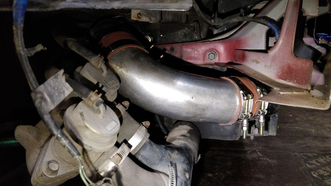 Докупил черного силикона и начал собирать пайп с турб в интеркулер и млять… Не хватает пайпов от фильтров к мафам. Быстро нашел, докупил теперь вроде бы все. В итоге все собрал, но "рогатка" упирается в сток вырез в кузове. Позже подпилю немного. И будет ок. И скорее всего куплю грибки.