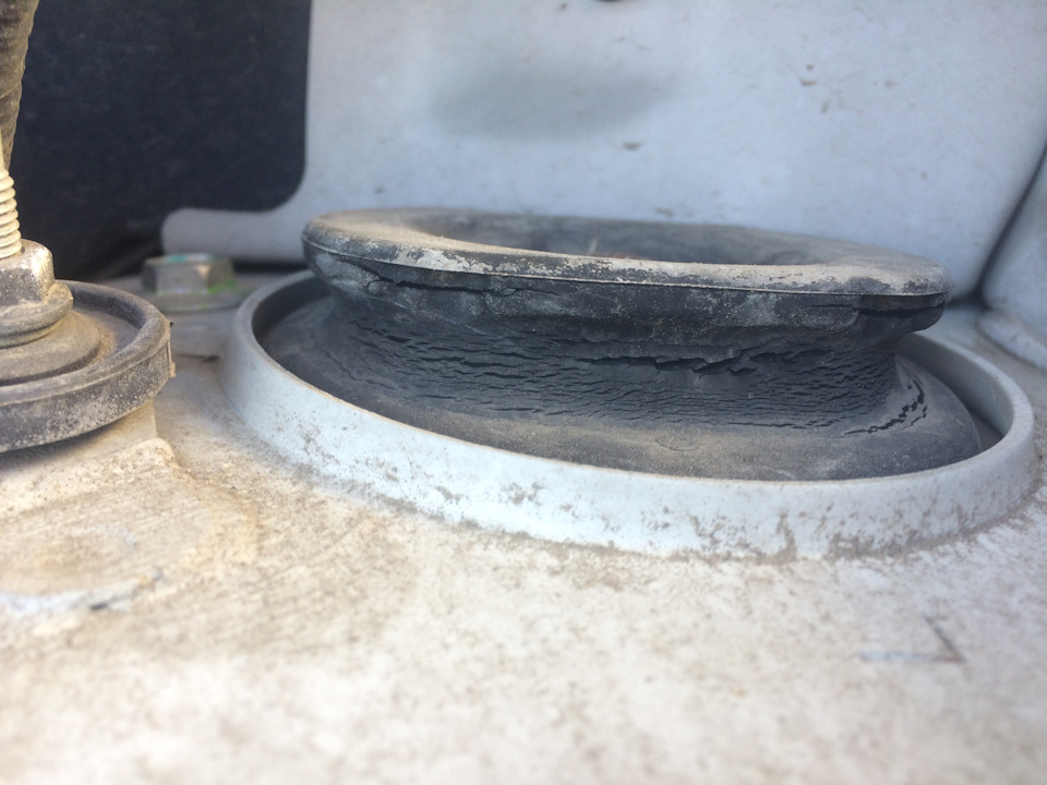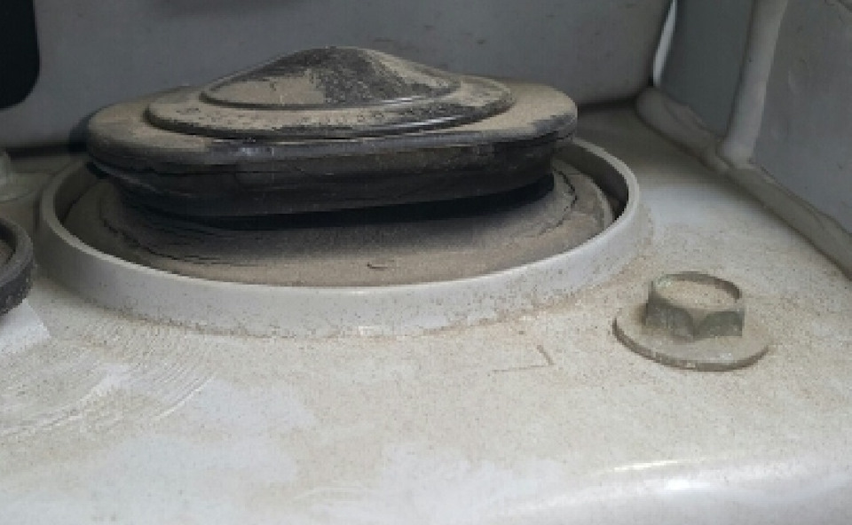Как водится все началось с малого — при замене колес обнаружен упавший пыльник стойки. Включил в план покупок и казалось бы все, но доливая омывайку в бачок обнаружил неприятную картину — значительные трещины резины опор. Тут еще сыграло то, что площадка была не совсем ровная и колеса вывернуты были. Повреждение "раскрылось " во всей красе. Фото тогда не делал, сделал чуть позже. Тут не сильно страшно