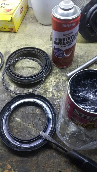 у меня же лапки — такой ремонт, как правило, на СТО. Раз уж сняли все, почему бы не поменять и подшипники… (старые я аккуратно в коробочку сложил)
