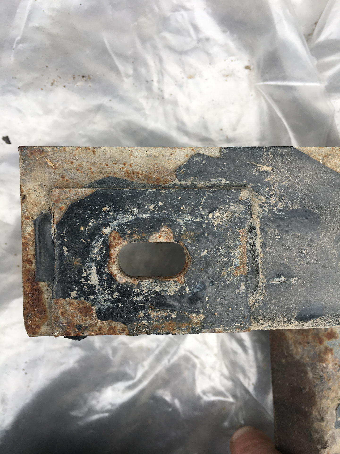 Зачистил от ржавчины, прошел преобразователем ржавчины, покрасил в 5 слоев краской по ржавчине, покрыл герметиком с баллона в 3 слоя, чтобы камни не сильно краску лупили.