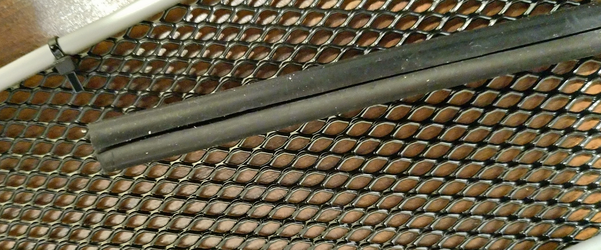 В Леруа Мерлен купил два алюминиевых прутка 05х1000 (144р) и одну алюминиевую полоску 15х 2 ( 1м) (40Руб), в автомагазине купил сетку крашеную черную (400р). Припой алюминиевый Castolin 192 FBK (2х500 мм) 4 штуки (368р) Две металлические скобки с резьбой под болт для крепления к бамперу (120р) и два болта под них (60р). Силиконовая трубка 6мм 2м (120р) Хотел купить (П-образный) силиконовый профиль но не нашел по близости, поэтому обошелся менее эстетичным силиконовым шлангом.