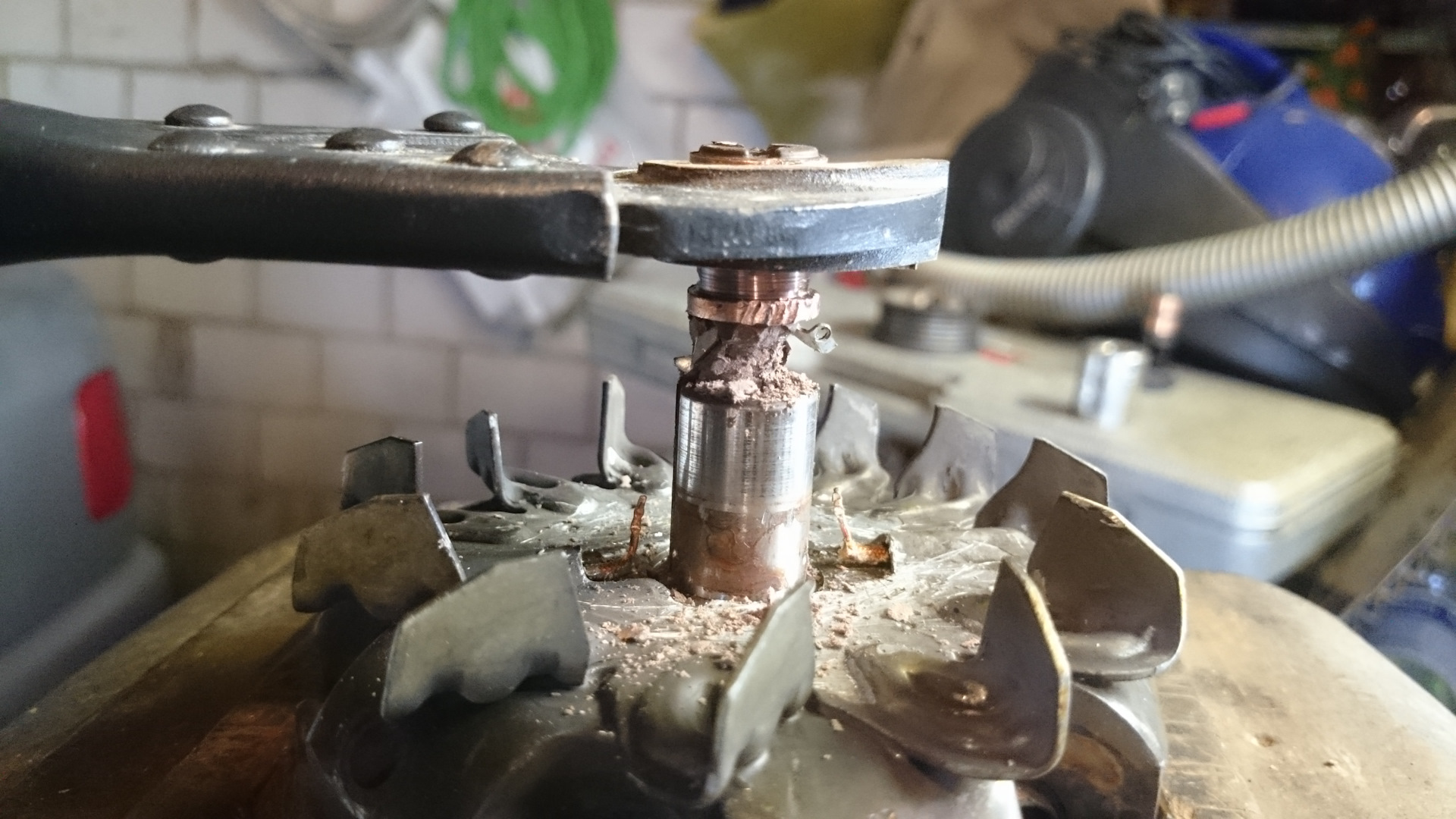 Когда вытащил болт, его тоже немного подточил