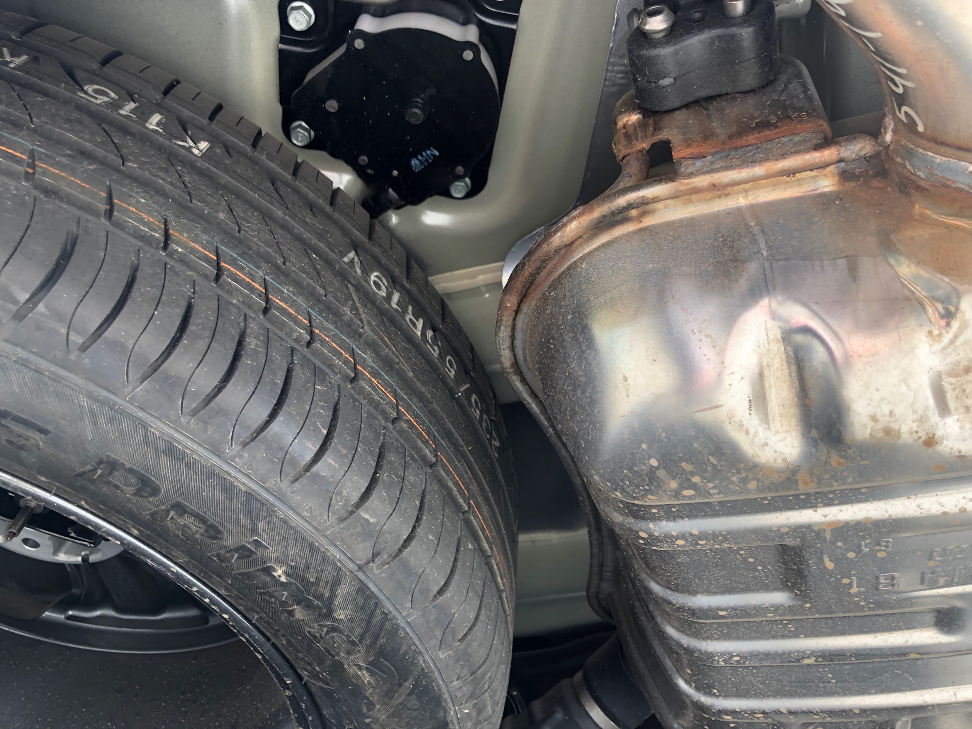 Коротко (потому как про эту тему уже все знают) — на корейцах запаску крепят снизу и их постоянного воруют – не уследил и остался без дорого 19” полноценного запасного колеса (потому что кто-то их аккуратно «насобирал» и у него получился комплект колес (только без датчиков – но не суть).