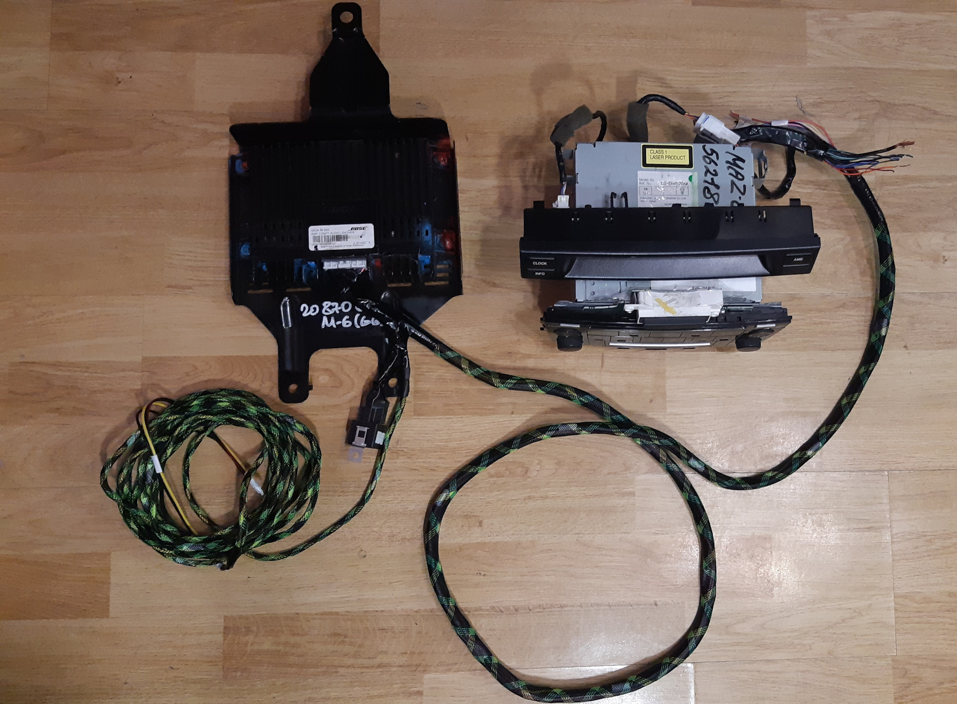 Привет, может ты поможешь, купил себе мазду 6 2004 года лифтбэк, стояла там акустика но играла очень тихо, решено было купить динамики так как может из-за них(НЕТ), потом решил купить радио от 2006 мазды и бортовой комп, как оказалось что бортовой комп имеет другое подключение тоесть другую розпиновку(как мне найти этот провод, как его подключить?) после замены радио зву так и не поменялся, смотрел в машину а в машине усилителся как будто и небыло зотя на бортовом пишет Бозе саунд, помоги пожалуйста, я уже не знаю что делать. Провода все обрезаны на магнитоле, они впринцыпе не нужны кромер одного отдельного, который не пойму почему оказался отрезаным от всего это самый верхний левый кабель