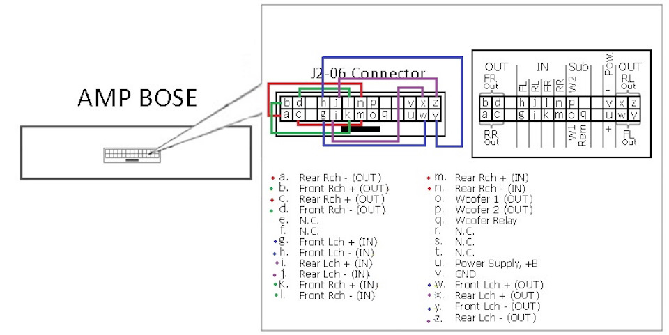 Так как сейчас высокоуровневый сигнал идет прямо в усилитель, поскольку в босе с пинов которые у обычной подают сразу на динамики сигнал, идет сигнал слабый в усилитель и уже там пройдя его и усиленный заходит на динамики через его фишку.