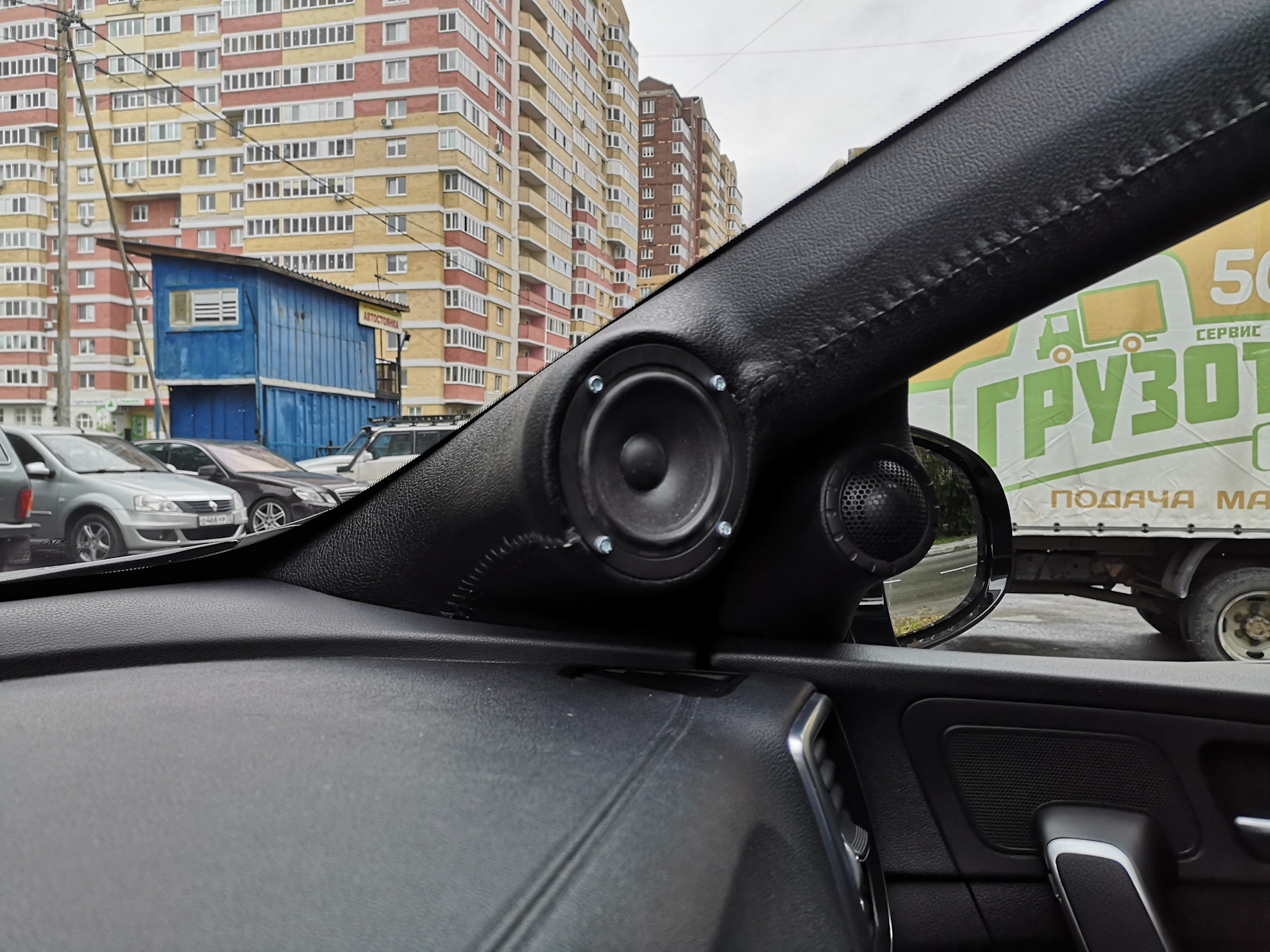 Ездил довольный с двушкой и сабом, и горя не знал. Но как то напрягало то что голосовой диапазон воспроизводится откуда то снизу из колодца какого то. Усилок лишний есть, пару свободных каналов проца есть, заказал серединки, потом подиумы на передние стойки, и стал потихоньку готовиться к трехполоске.