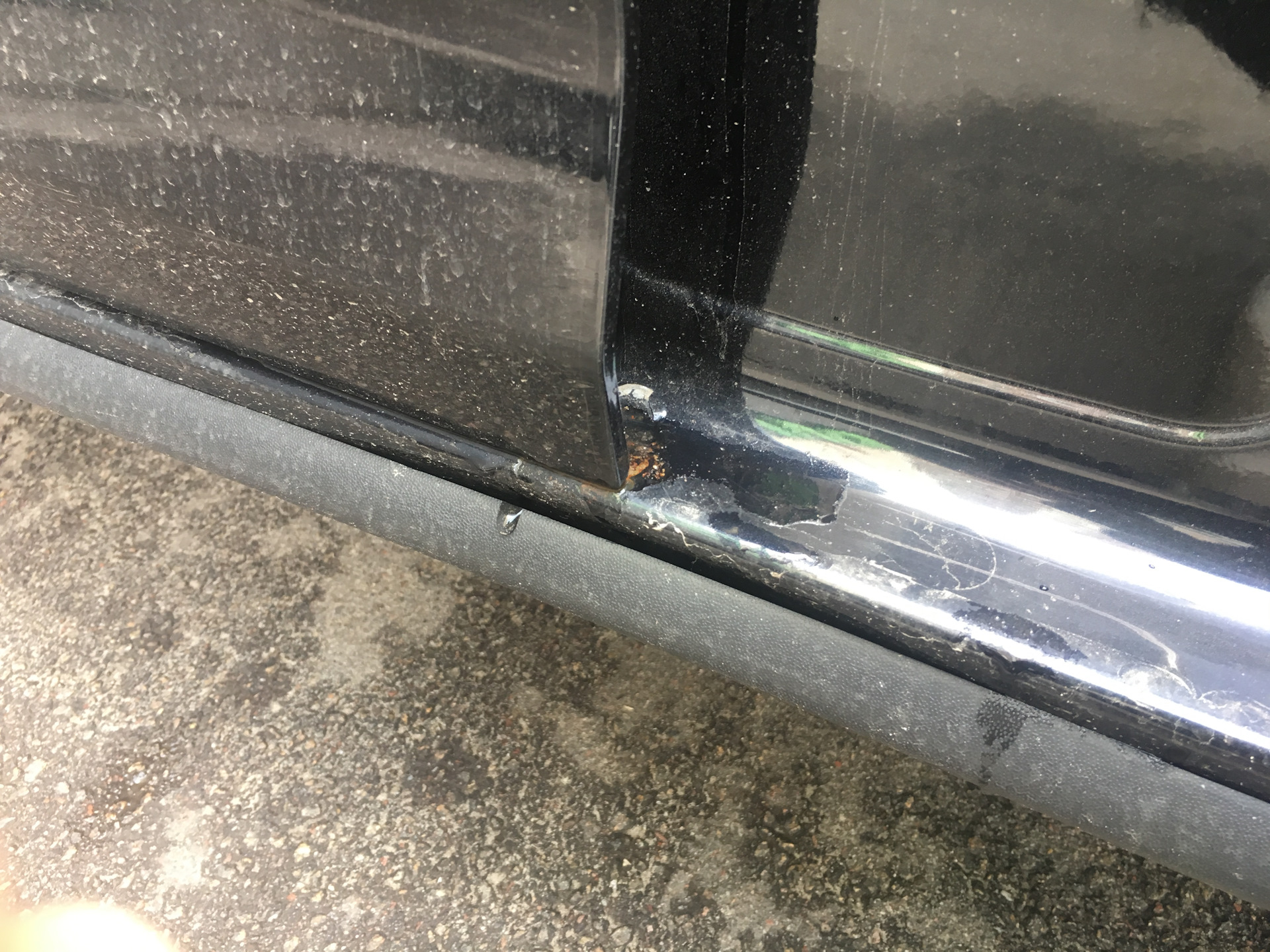 2. ЛКП — На "трезвую" голову после покупки машины, я нашел довольно таки много сколов с подкрасами. Множество мелких подкрасов на задних и передних крыльях, сколов от пол см до 2 см которые были закрашены кисточкой. Извечная болезнь гольфов, кончик водительской двери который гнется от льда — на нашей машине тоже это было, кончик выгнули обратно и закрасили карандашом. Сделано было в унылых гаражных условиях и скорее всего кривыми руками. Если бы мы заметили эти косяки при покупке авто, то скидывали цену, так как подкрашивать это всё, а особенно делать гнутый порог с покраской, стоит прилично. Я узнавал, чтобы привести одну сторону порога, там где вмятина, в порядок, необходимо 300$.