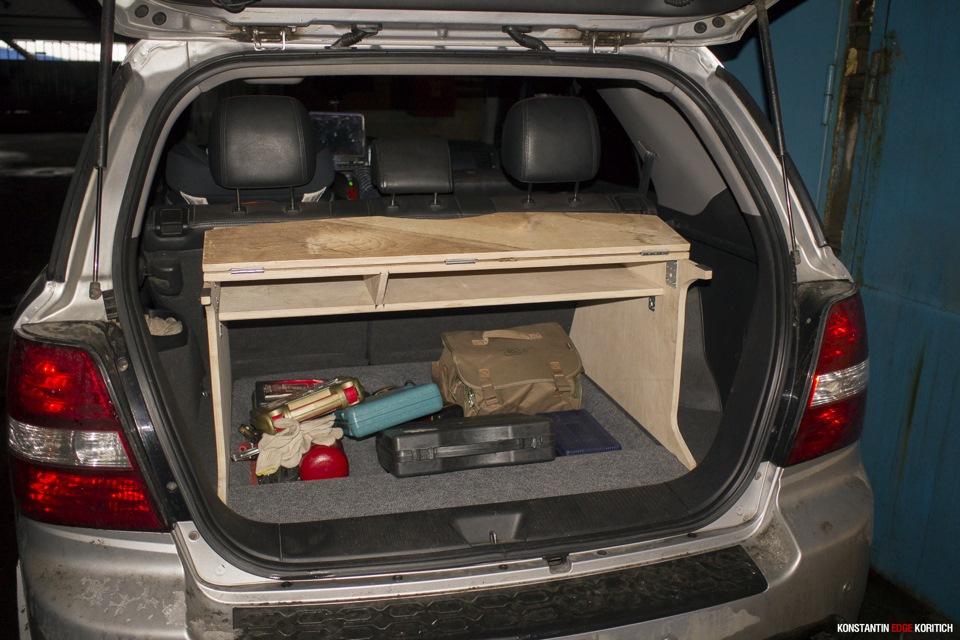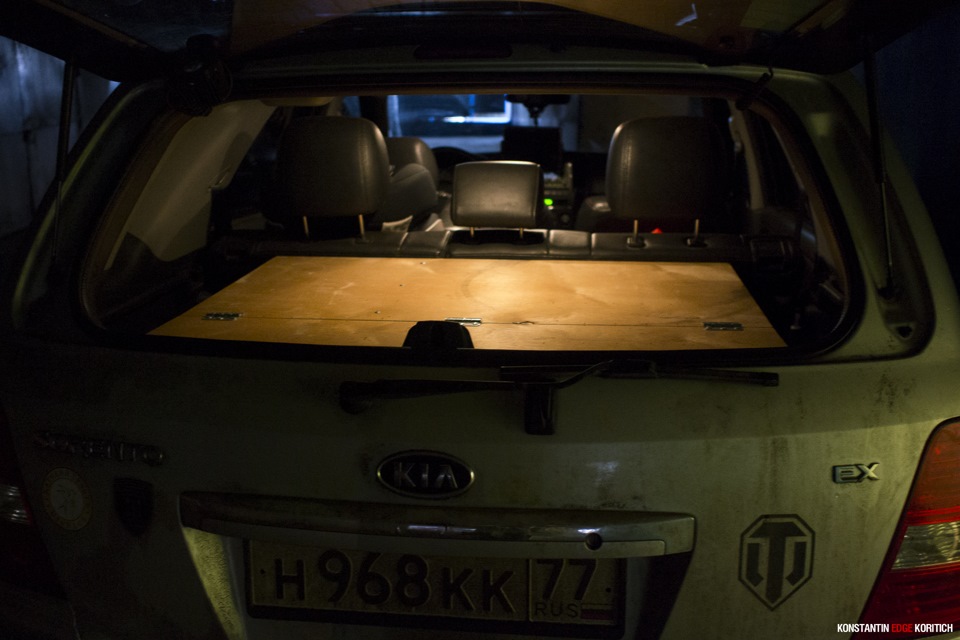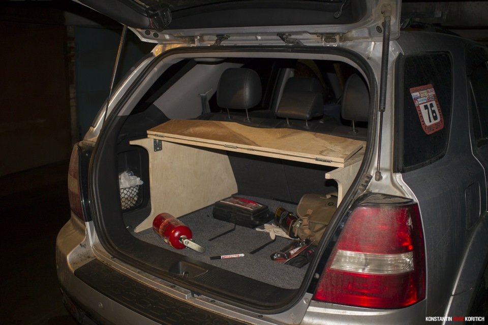 Пока это выглядит вот так. В последствии эта полка будет обтянута карпетом. Так же будут шатные места под огнетушитель, аптечку и некоторые коробки с инструментами.