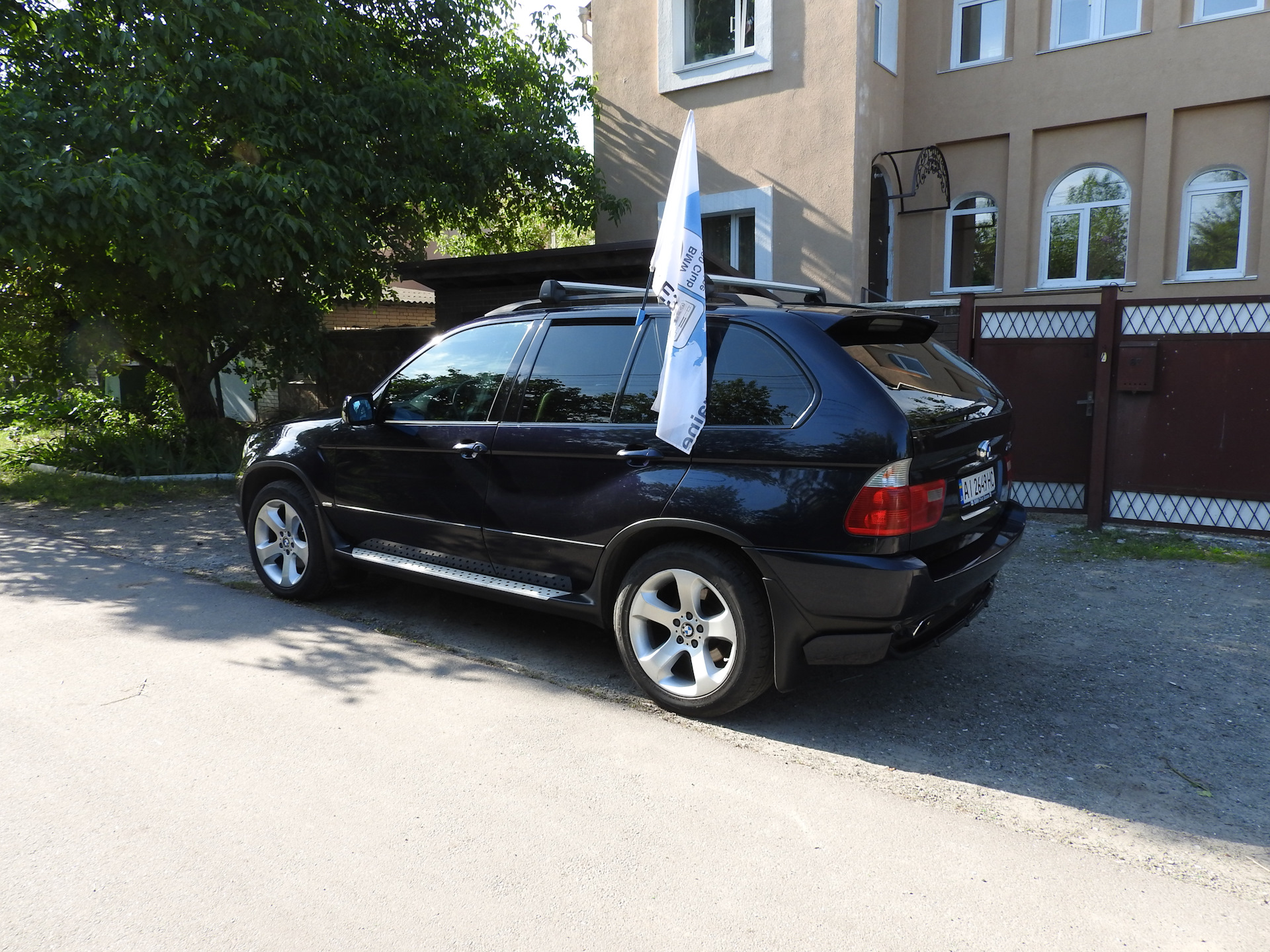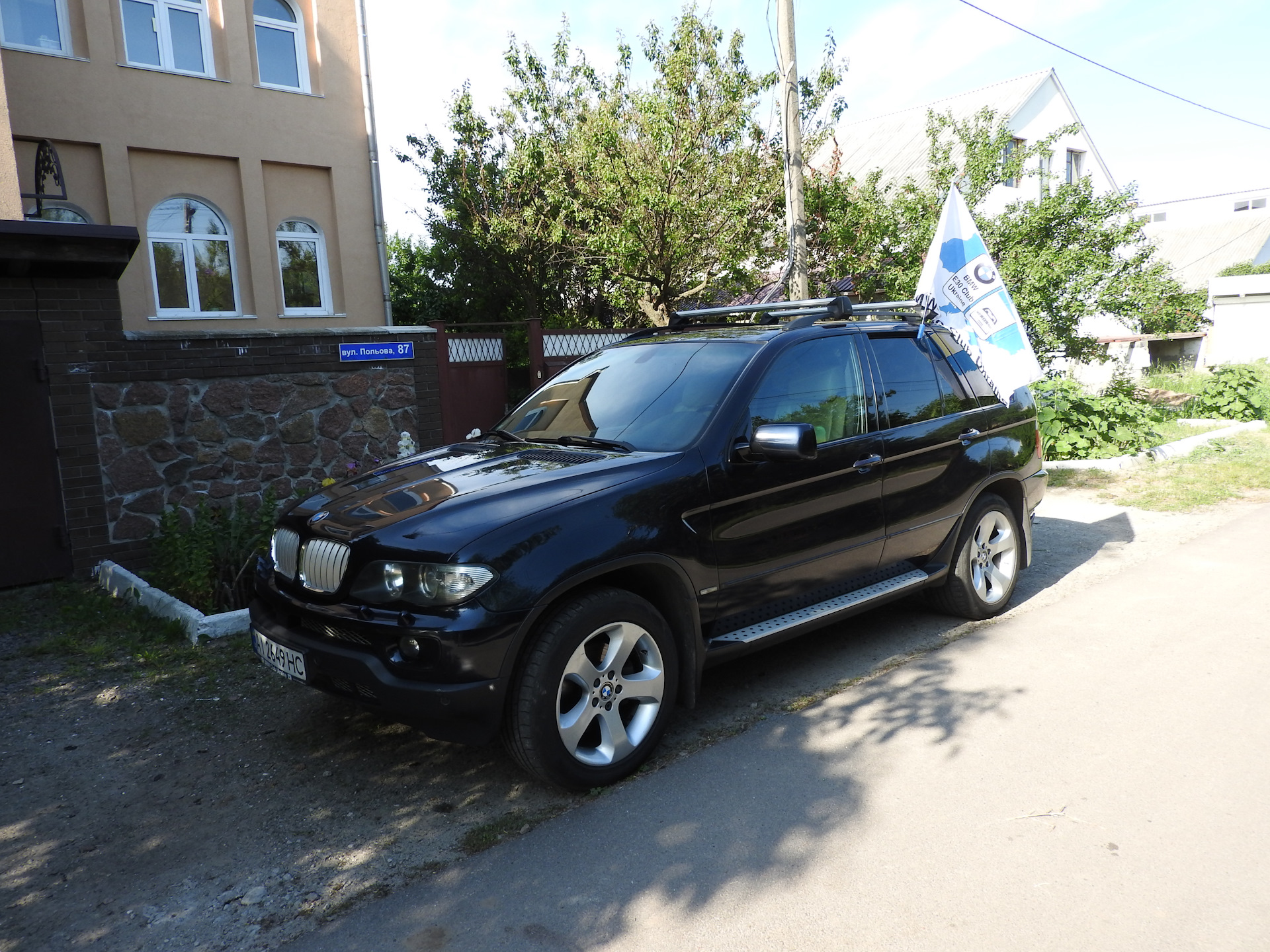 А пока участвовал в колонне на Х5, в этот раз в роли замыкающего, машины сопровождения и "заграждения" )) С вечера вымыл, рано утром повесил флаг и поехал на место сбора колонны — на набережную.