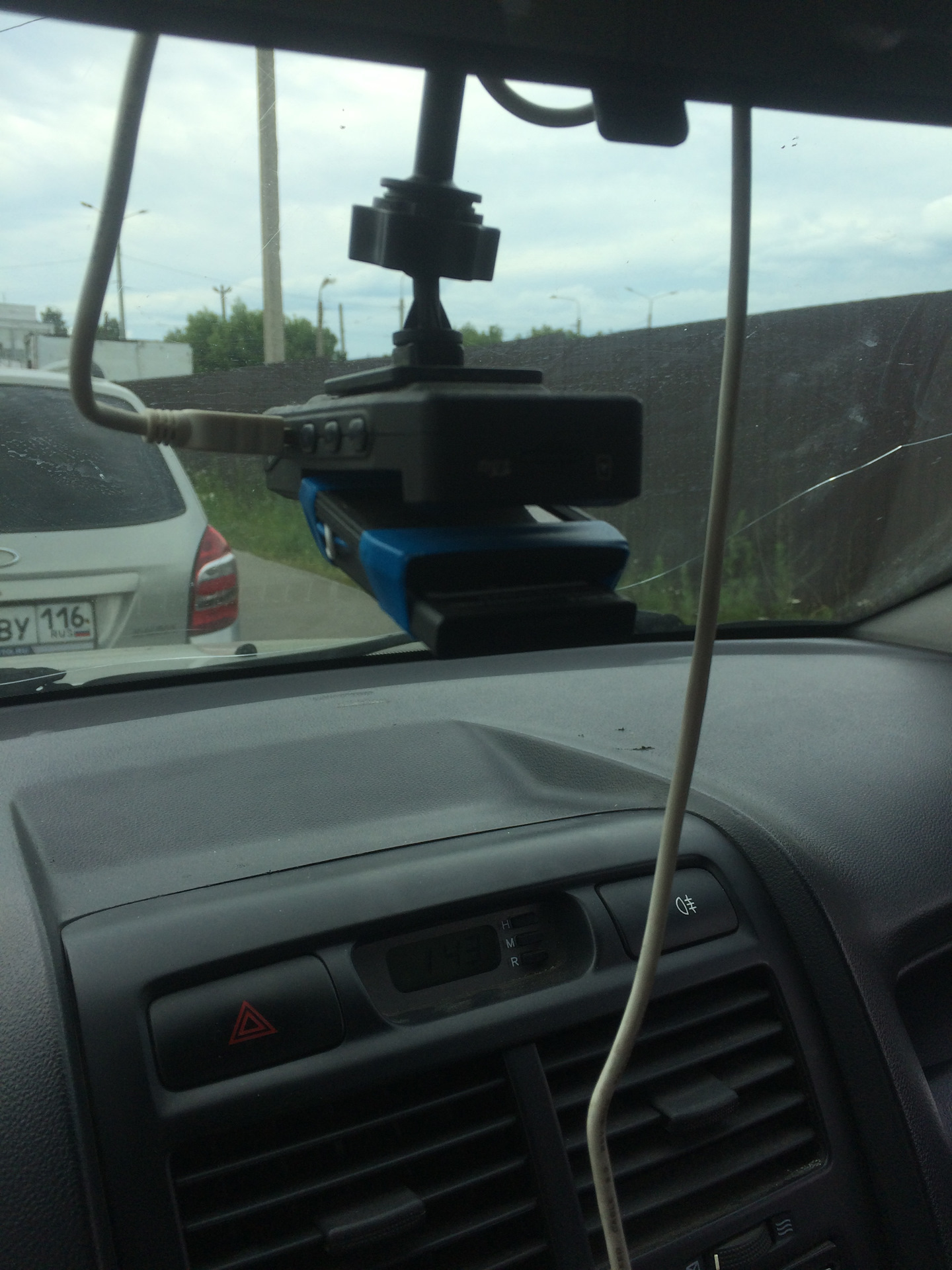 А вечером не смог снять регистратор с крепежа. Корпус его подплавился и погнулся))