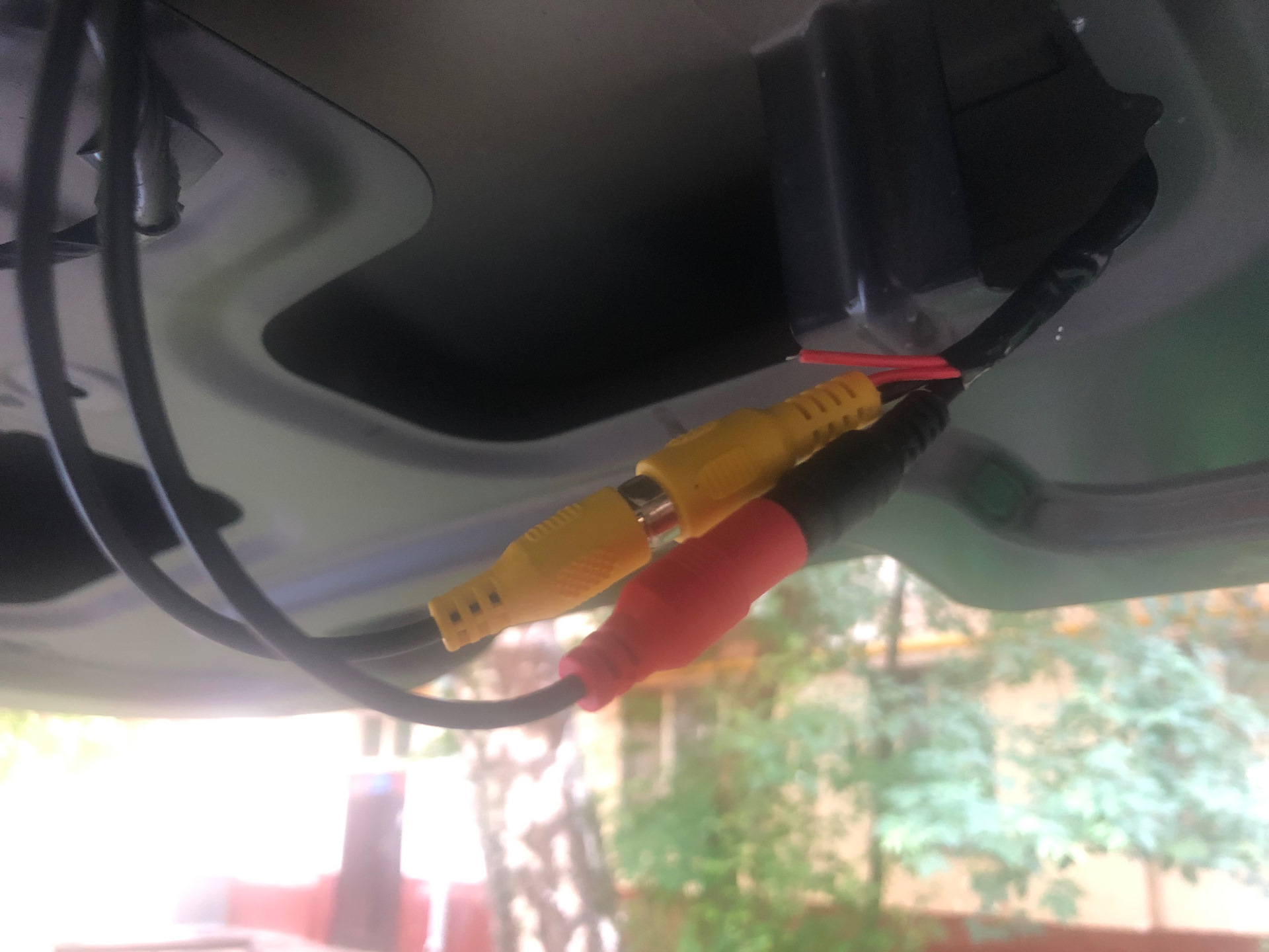 3. Сама камера установлена по штатной проводке, откусили штатный коннектор, нашли нужны провода, питание взято от ламп ЗХ, все коннкекторы выведены внутри багажника, чтобы за накладкой они не окислялись.
