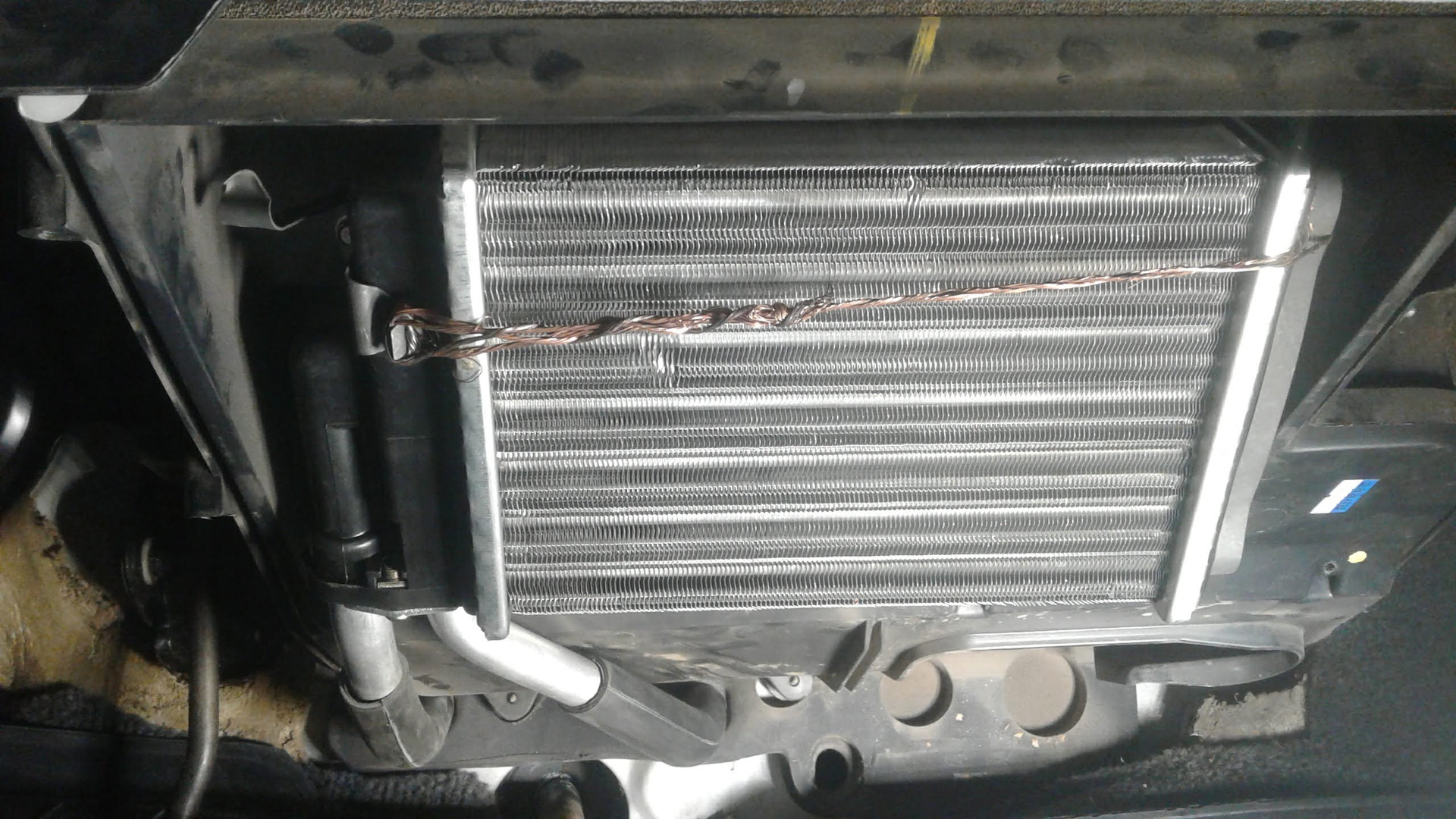Несколько лет выделывалась печка, то кочегарила, то дула холодным… в итоге стала замечать, что лобовое стекло как то запотевало, вытираю а оно опять как жирное, но и потихоньку стал уходить антифриз…((( Подняли машину на подъёмнике, долго пришлось искать пока на меня не капнул антифриз… ну вот и нашли протечку, и как бы с таким никогда не сталкивались, не могли понять почему капает со шланга кондиционера, потом нам объяснили, что там стоит поддон … хорошо, что текло не в салон. Заглушили печку, ну и постепенно готовилась к замене радиатора…