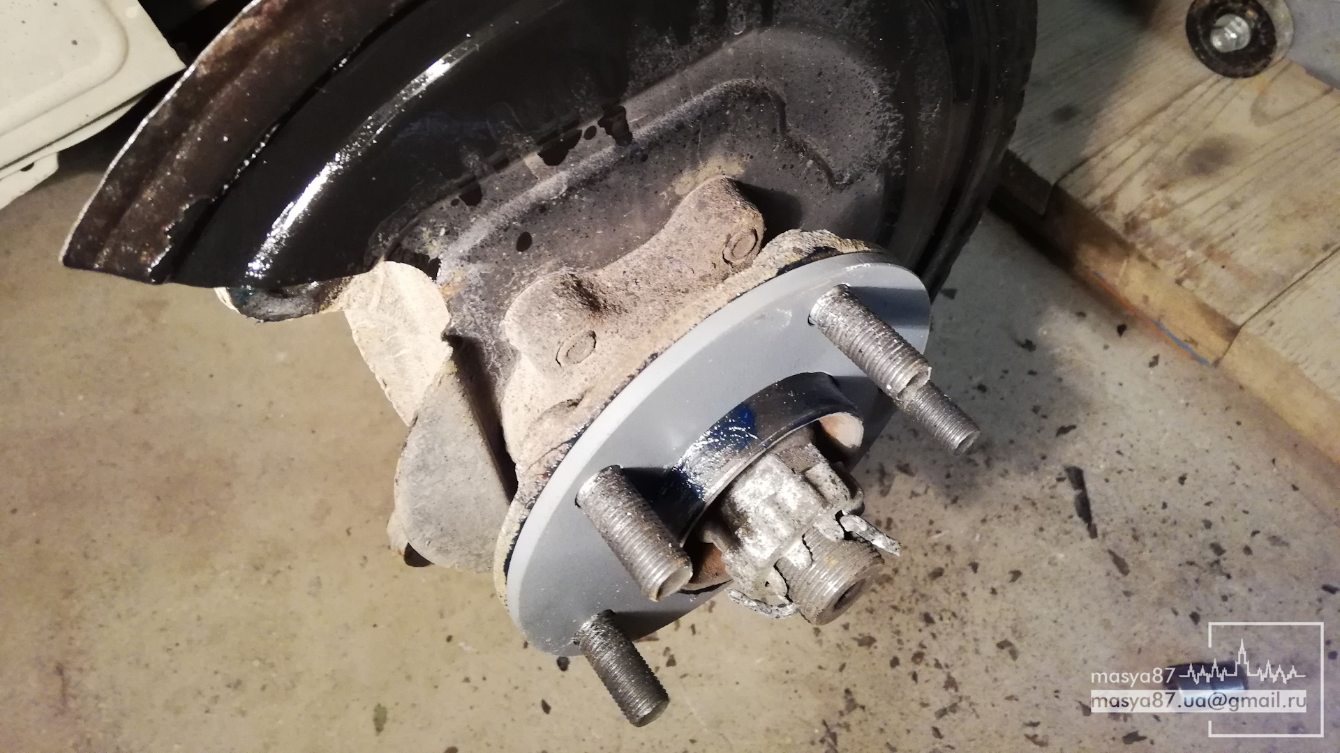 Так же пришлось столкнуться с кожухом тормозного диска. Кашкаевский+2 я так и не нашел, поэтому решено было выгибать родные!