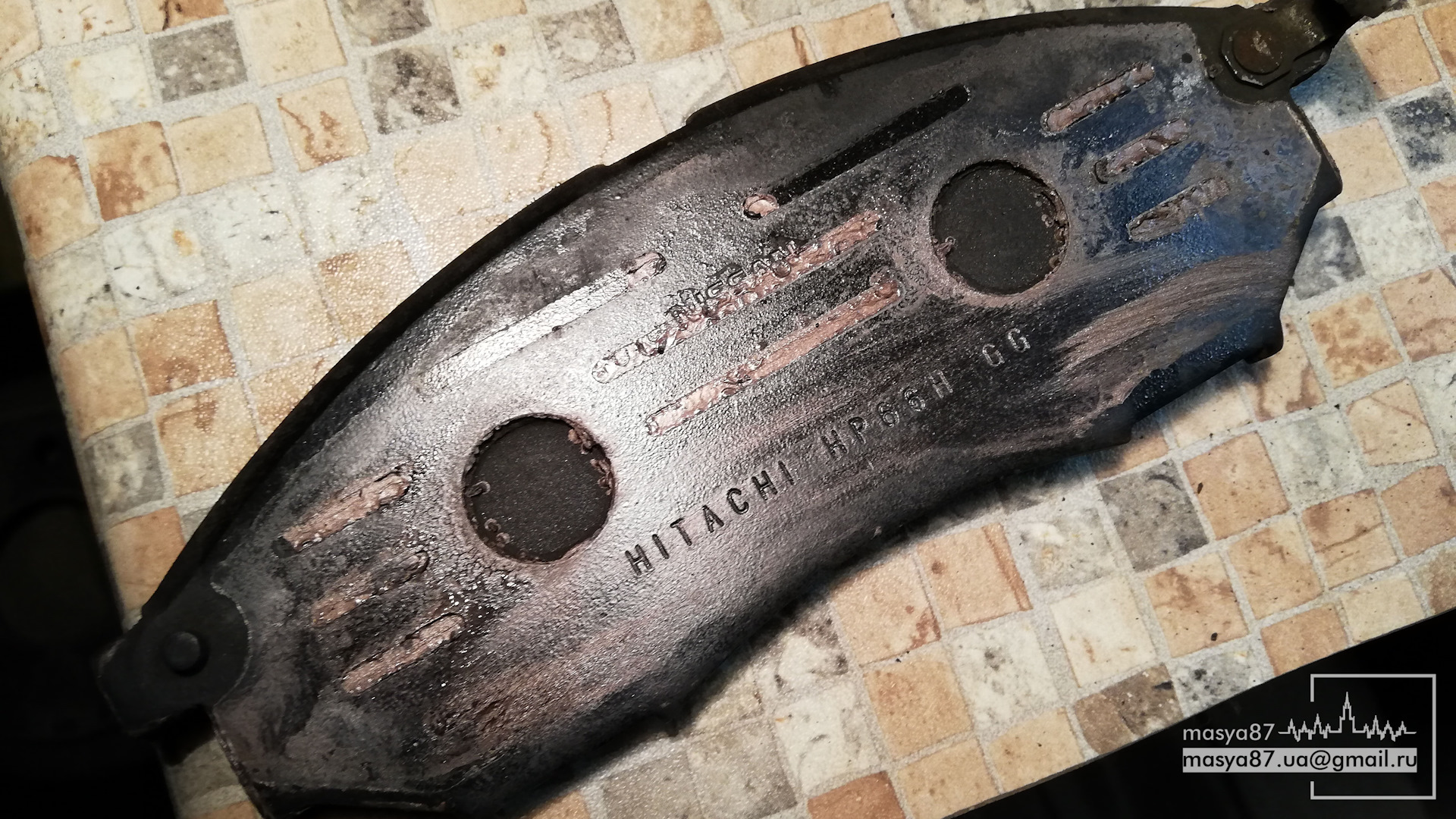 Колодки вместе с суппортами шли оригинальные — Hitachi, решил их же и использовать, тем более вряд ли куплю у нас что-нибудь лучше, да и лишних денег нет.