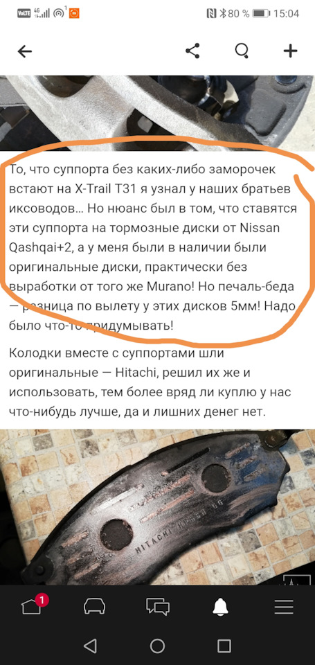 То, что суппорта без каких-либо заморочек встают на X-Trail Т31 я узнал у наших братьев иксоводов… Но нюанс был в том, что ставятся эти суппорта на тормозные диски от Nissan Qashqai+2, а у меня были в наличии были оригинальные диски, практически без выработки от того же Murano! Но печаль-беда — разница по вылету у этих дисков 5мм! Надо было что-то придумывать!
