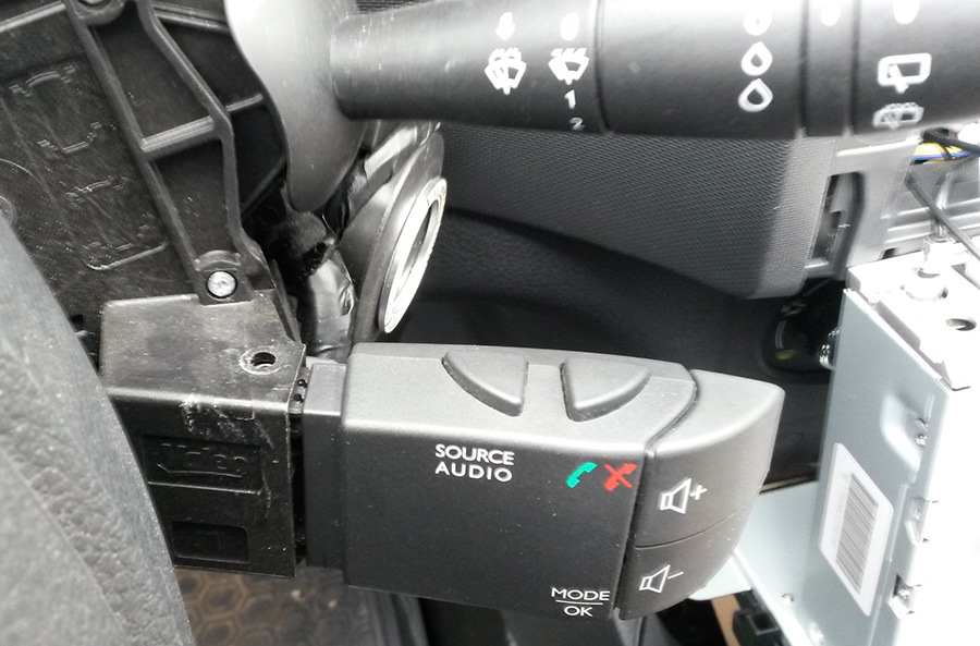 Магнитолы не было, динамиков не было. Комплектация комфорт. Я не помню, по-моему фишка от шлейфа где-то рядом с гнездом джойстика была закреплена. Год с лишним назад делал, не вспомню уж. Но совершенно точно я просто купил джойстик, поставил, а обратный конец шлейфа был в общем жгуте который к магнитоле
