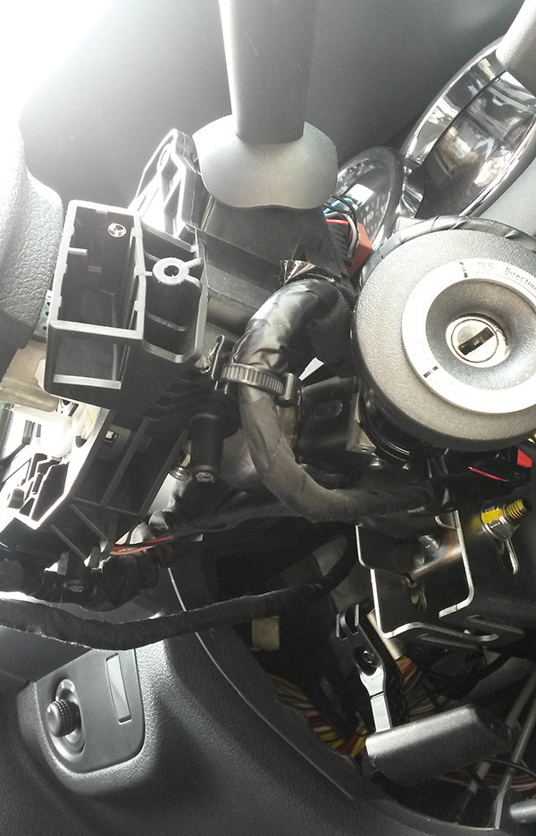 Отручиваем торксом на 20 нижний кожух руля и снимаем его. Отламываем на нем место под джойстик.