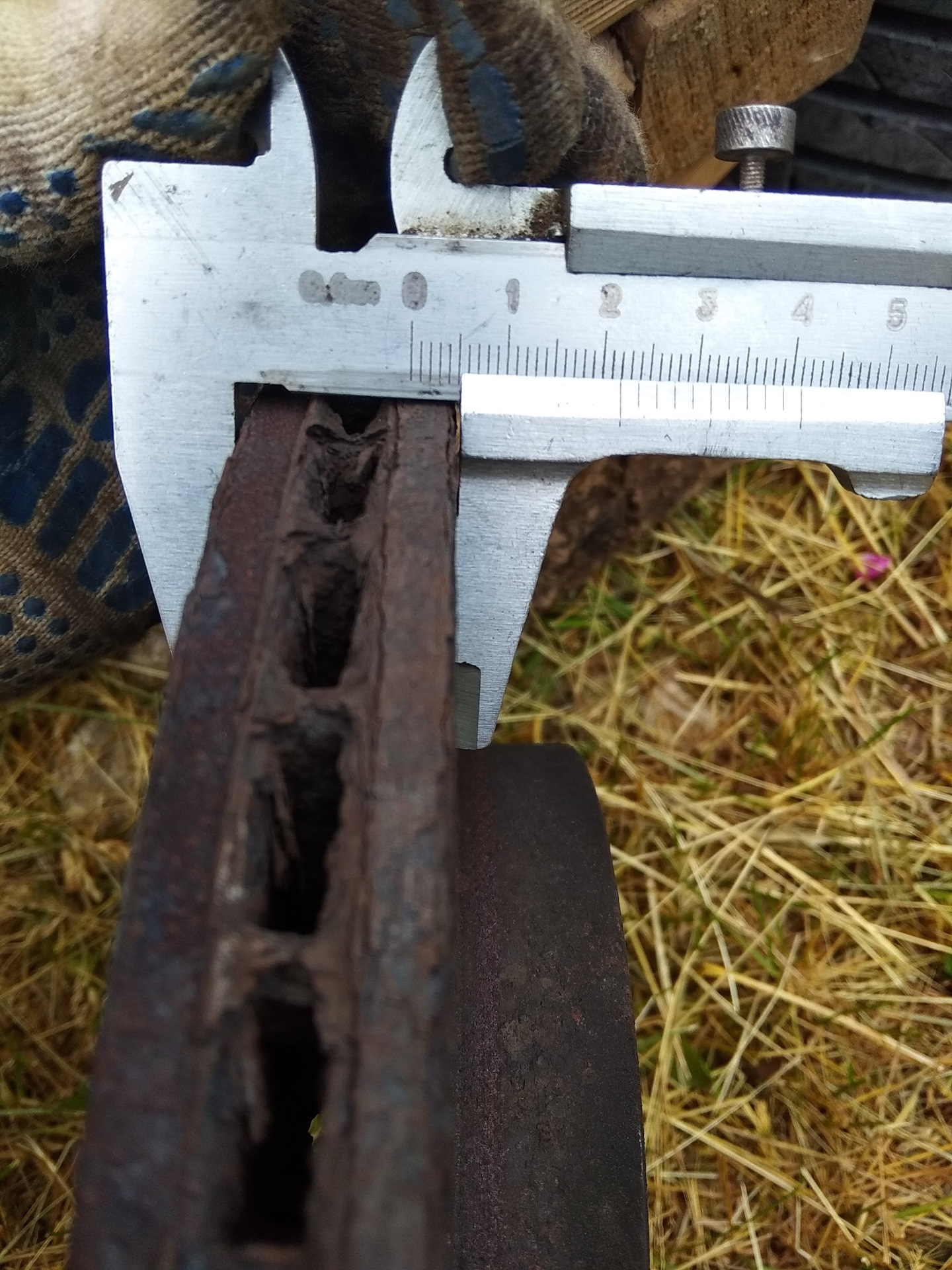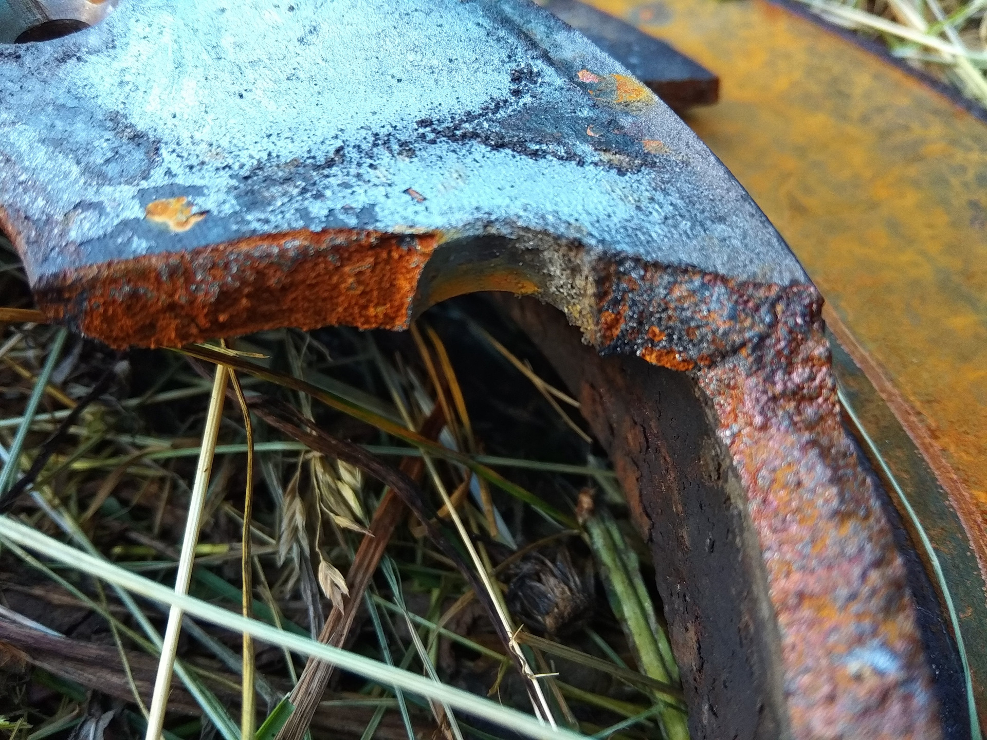 Металл пористый и хрупкий. Года берут своё. Сутки пролежав на улице и повидав небольшой дождик, ржавчина осела плотным слоем.