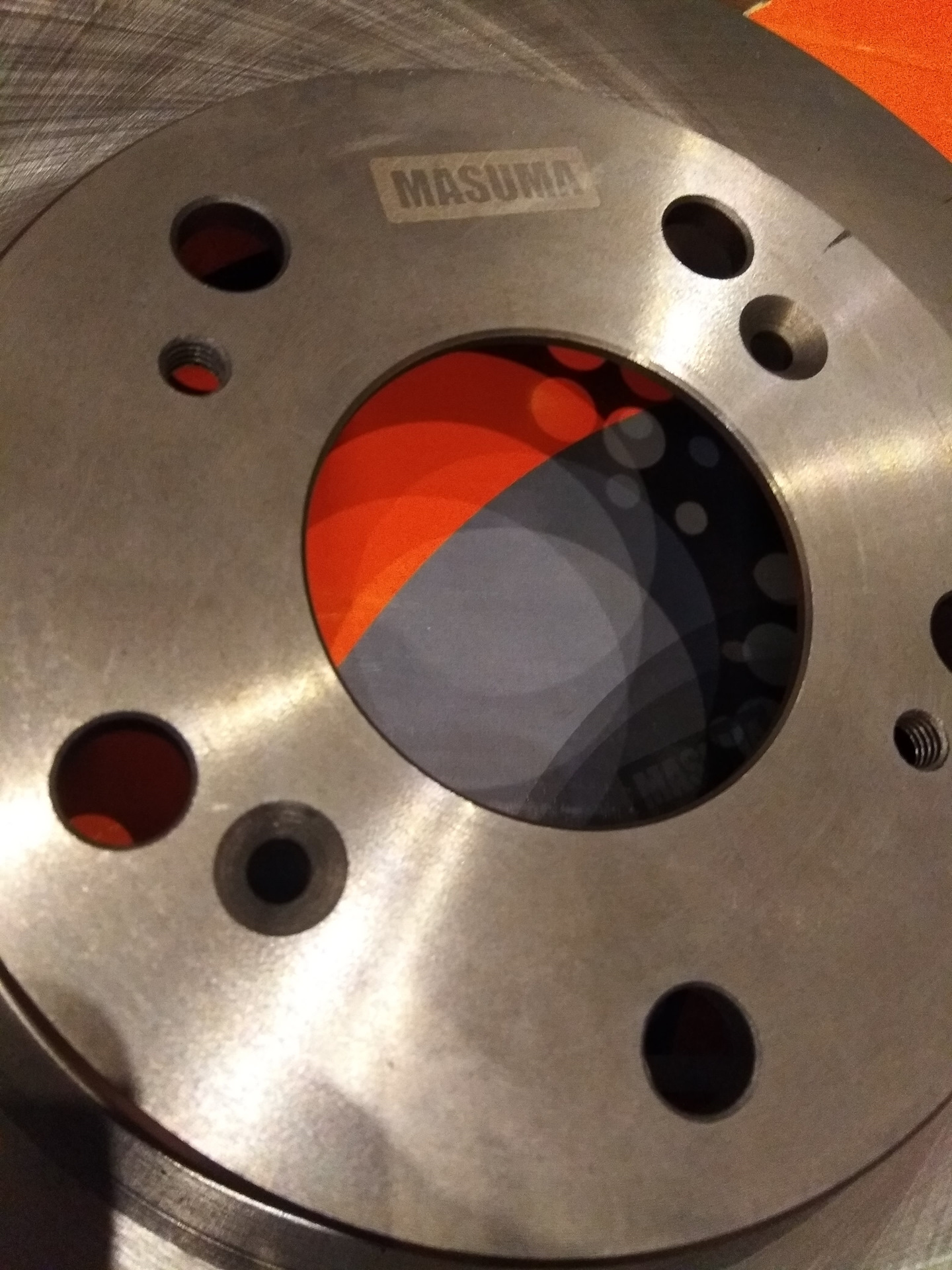 На каждом диске присутствует гравировка "Masuma", Все надписи четкие и ровные.