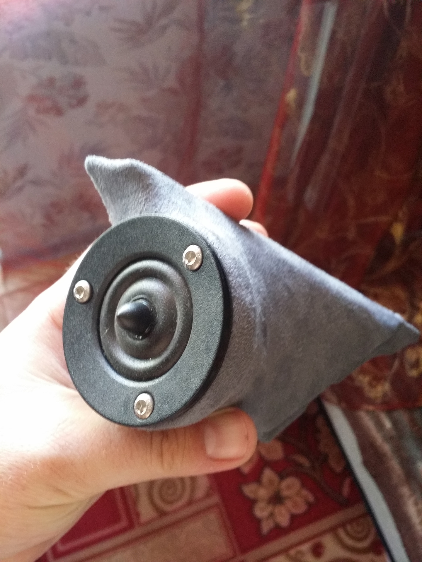 Решил минимально вмешиваться в салон, посему самое безболезненное место для твитеров это уголки зеркал ( хоть и не самое оптимальное). Родные уголки пошкурил, выставил колечки, применил чулочную технологию, обтянул алькой и вуа-ля. Маемо шо маемо)