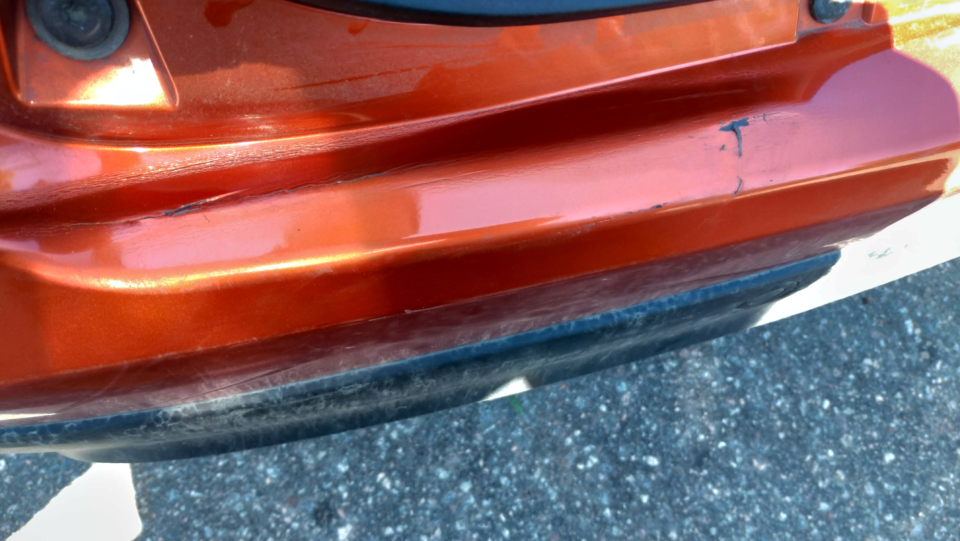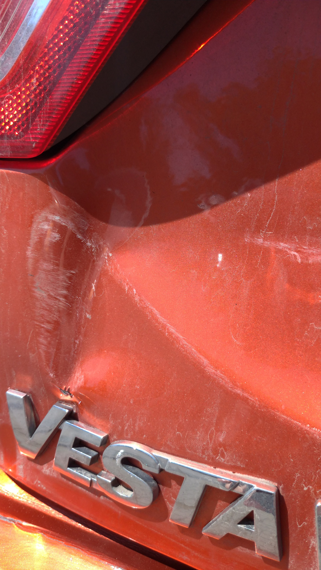 Выхожу — стоит задом ко мне ведровер, помял мою красавицу, причём поначалу казалось только бампер, ан нет — ещё и крышку багажника. Зачем он здесь начал разворачиваться и как мог меня не заметить — ответов у меня нет.