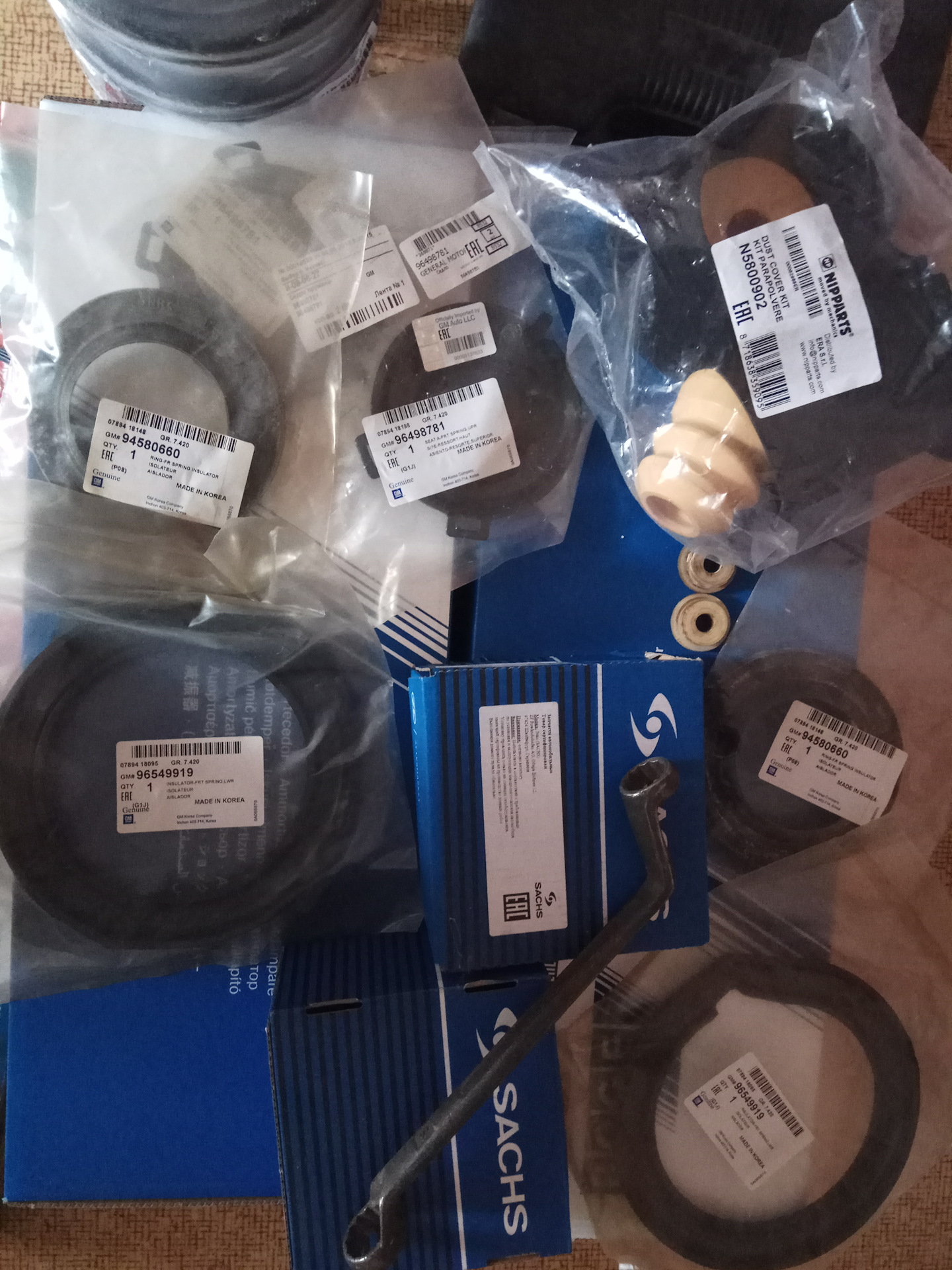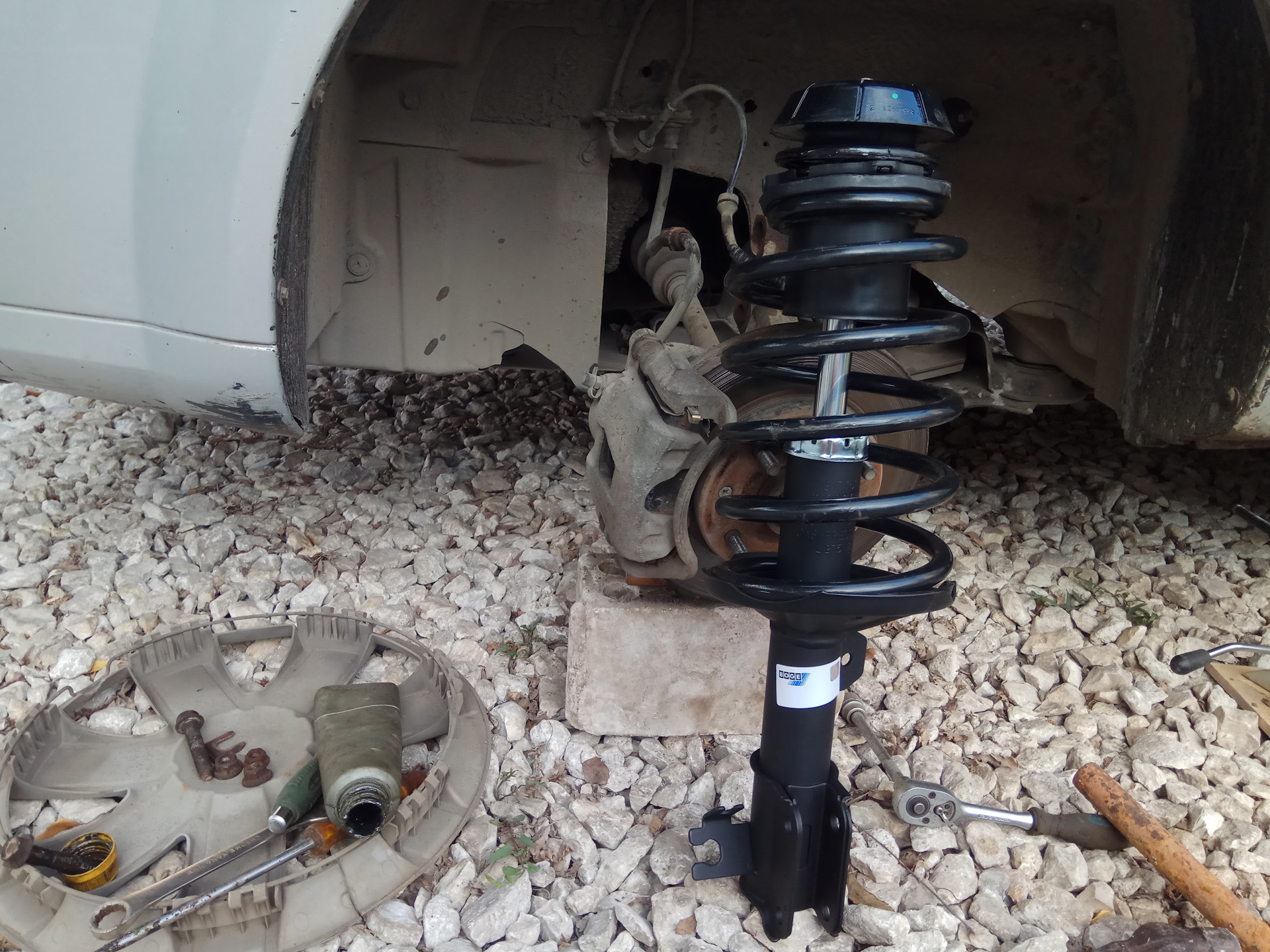 Долго ездил я на лопнутой передней пружине. Но всему приходит конец. Заказал стойки, пружины, опоры, пыльники, отбойники, подшипники ну и резинки, в общем чтоб все было новое. Обошлось мне это дело ровно в 10к. Выдались свободные выходные. Дома собрал стоечки и пошел инсталировать. Открутилось все без особых проблем. Кстати говоря, стойки стабилизатора meyle HD еще живы, идем на рекорд!
