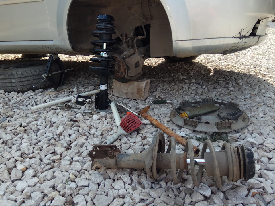 Мдя, если бы не пружина, еще походили бы. А ведь это еще родные стойки 11 лет и 320 тысяч пробега…