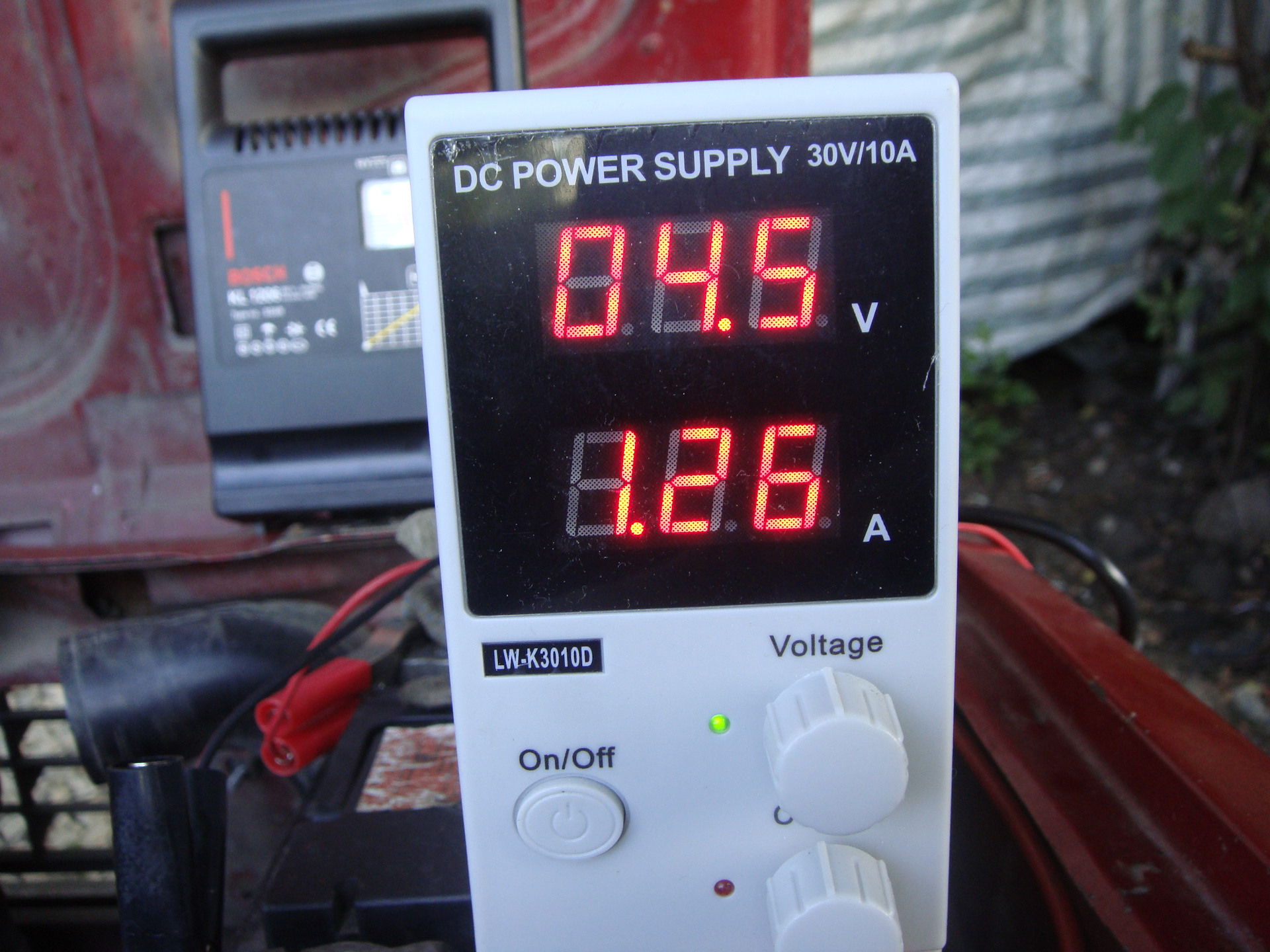 сначала проверил на 10 вольтах, но явный перебор, даже сфотать не успел, манометр зашкалил