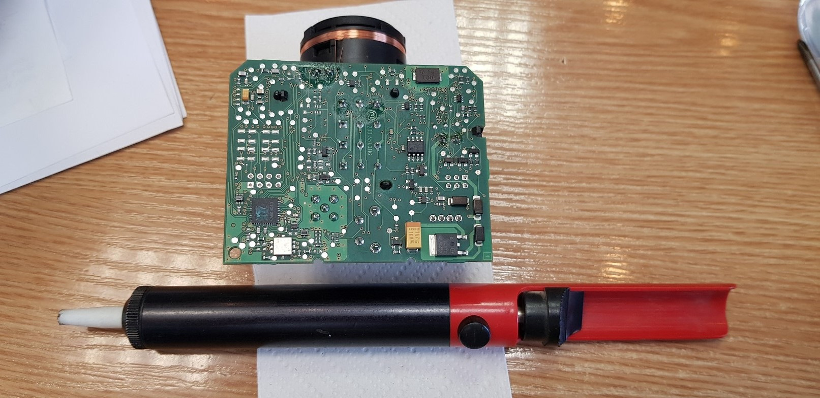Вскрываем корпус, по три защелки с каждой стороныС торца выкручиваем два шурупа под торкс и снимаем переднюю крышку.Вид спереди.Используя этот инструмент освобождаем от олова места пайки катушки иммобилайзера и электромагнита блокировки ключа.Места пайки.После того как выводы катушек свободны снимаем корпус замка с платы. Видны 4 микрика.С этого ракурса видно, что у первого микрика сточена контактная поверхность. Его и меняем.Микрик заменён.У оригинальных микриков были пупырышки, у китайских не было. Но думаю на скорость не повлияет.Здесь показаны места где была нанесена смазка Xerox для подвижных пластиковых деталей. Смазал для того, чтобы дольше прожили микрики. Смазку подогнал Сергей.