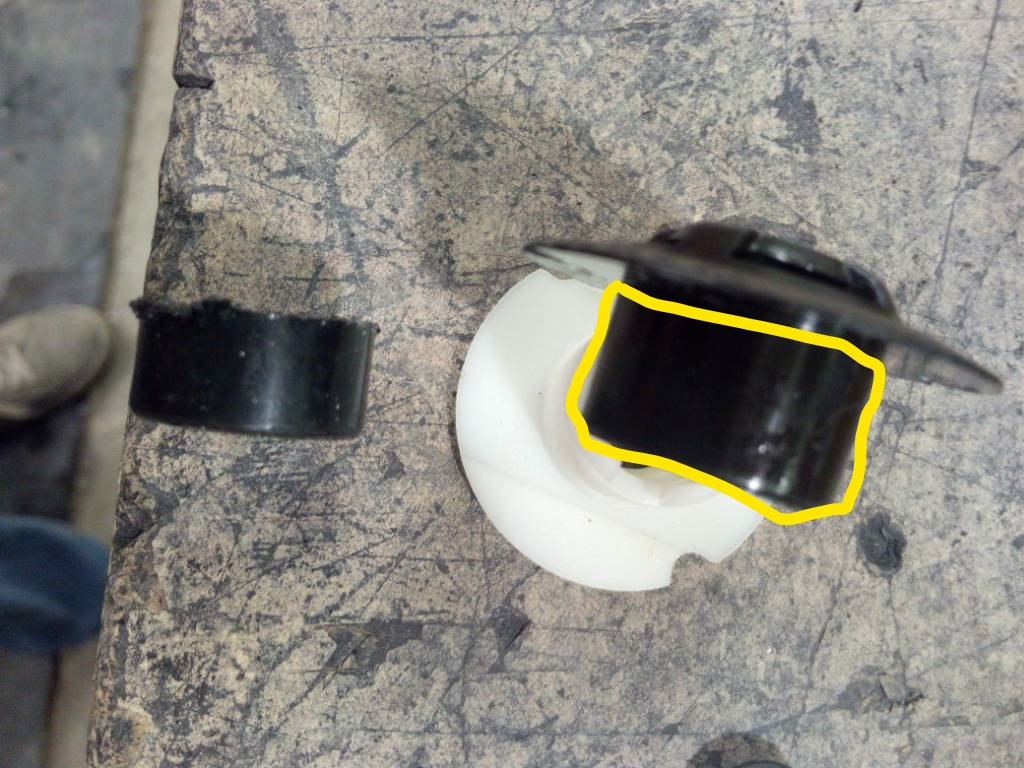 Затем берете новый и срезаете на черной клипсе ее "трубку"(она не проходит в отверстие на тросе) на картинке обведена. Собираете механизм: вставляете белую ее часть в рабочие отверстие, ставите резиновую прокладку и фиксатор, защелкиваете черной ее частью…