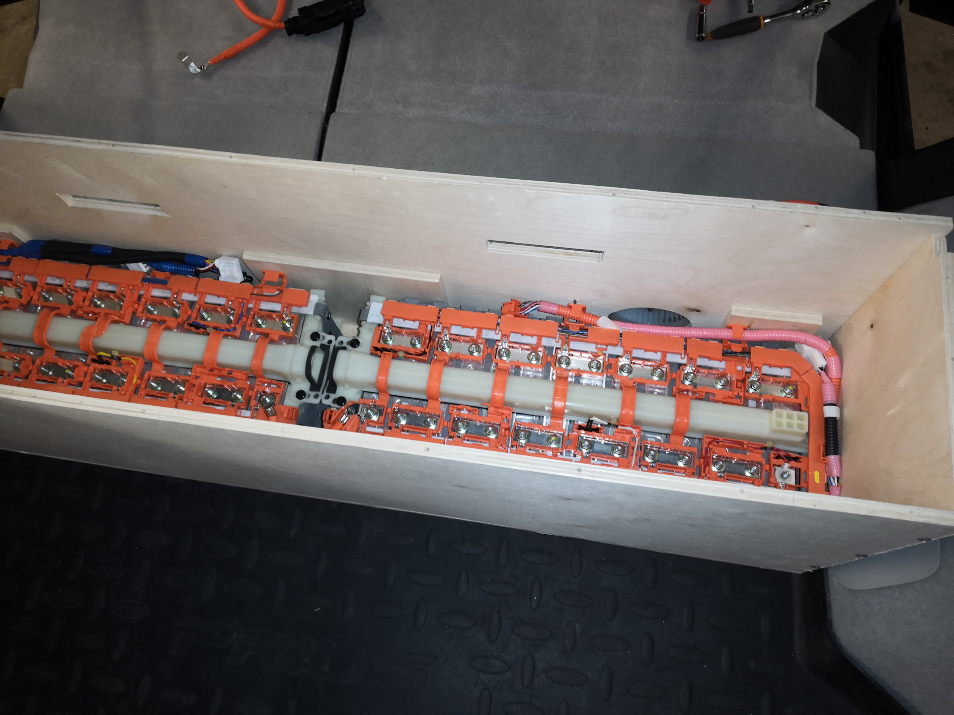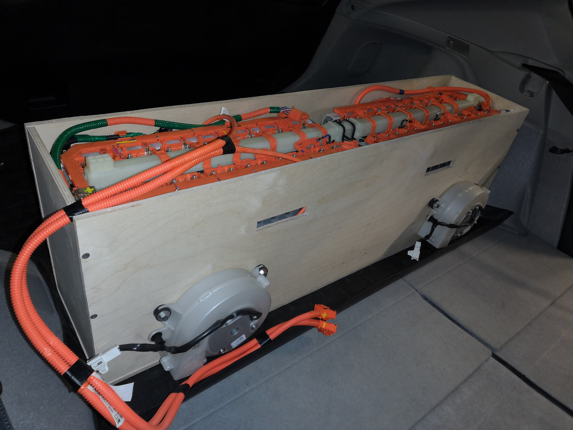 По случаю приобрёл Li-Ion высоковольтную аккумуляторную батарею с такого же PHV. Вначале тестово бросил её в багажник и подключил в параллель родной. Несколько дней покатался с удвоенным запасом хода на электротяге и понял, что хочу себе её оставить.