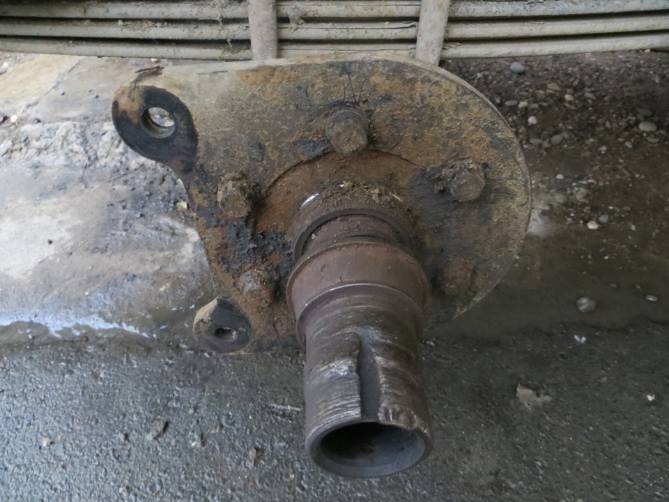 Надо было придумать что то другое. Ведь если вдруг такая ситуация повторится, то придется повторять весь процесс заново. Решил сделать цапфу съемной, чтоб если что, можно было без особых проблем заменить поломанную деталь. За основу была взята цапфа переднего поворотного кулака, так как она съемная.
