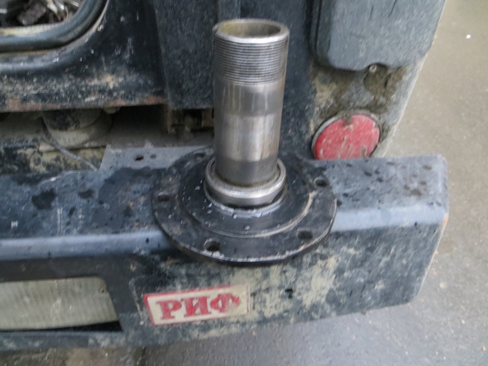 2) Более бюджетный). Так же снять и разобрать мост, отвезти токарю за 30км от дома (у него там огромный станок). Он сделает напыление на цапфу, заново выточит все так как надо и нарежет новую резьбу. Это немного дешевле, но работы примерно столько же, да и время те же 3 дня.