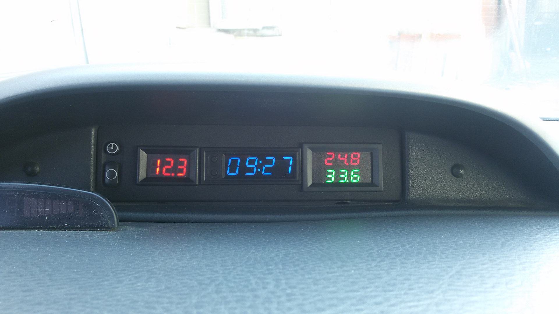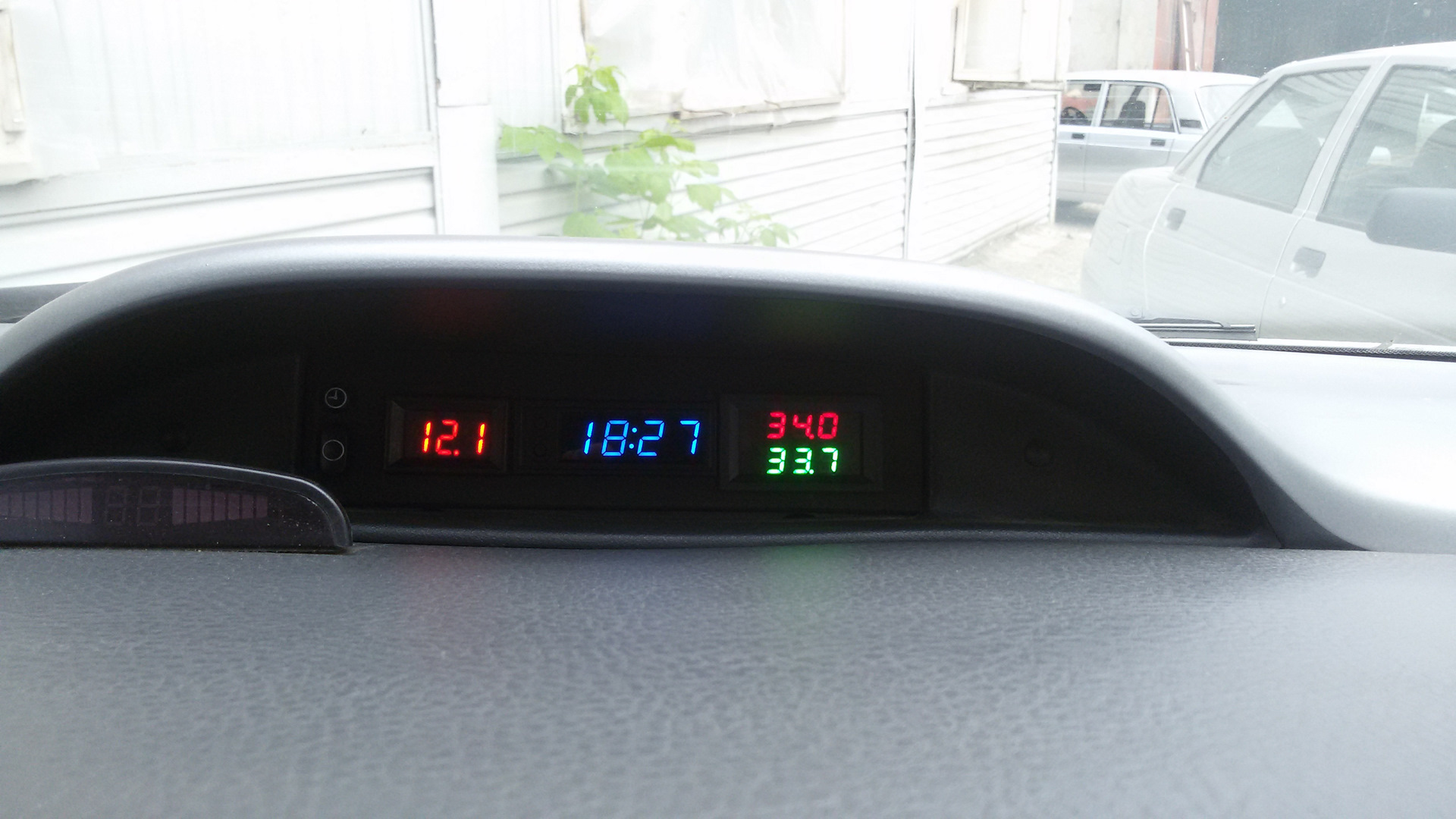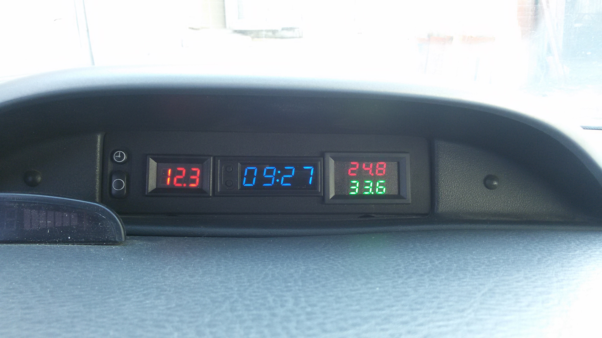 С момента покупки авто дисплей у меня функционировал, но, как бы это сказать, не совсем нравилась подсветка, чьи-то колхозные руки вкорячили туда диоды, но не в цоколь лампочки, а напрямую припаяли к плате, да так по проктологически! Ко всему, подсветка то мигала, то пропадала, то часть горит, другая нет…Короче, достала она меня, решил восстановить статус кво.Разобрал, выпаял диоды, вставил родные лампочки и…дисплей отказал совсем! При детальном рассмотрении оказалось, что шлейф настолько высох, что при малейшей тряске в руках(пока менял лампы) просто отвалился от стекла.Все попытки приклеить его на место или решить по другому(как советовал один Синтравод с форума Опель клуба) успехом не увенчались.Решил не морочить голову, заказал у китайцев приборчики, единственное, перелопатил весь сайт, а подобрать так, чтобы все три штуки были одного размера по ширине, не удалось.Но, мне и так нравиться.Всё установлено в корпус "родного" дисплея с небольшими доработками гравёром и паяльником.По сравнению с оригиналом( время, дата, температура-у меня 2,2 бензин, бортовика нет) функционал даже добавился: левый прибор-напряжение бортовой сети, по центру многофункциональный, есть возможность показа даты, времени, напряжения, температуры либо только одного параметра, либо перебор с интервалом, но я его выставил на время, правый температура в двух режимах в машине и за бортом.Читается и днём и ночью очень хорошо, благо, он у нас под козырьком.Очень удобно! Просьба к любителям оригинальных запчастей сильно не пинаться, так как цена на новый негуманная ни разу, да и не найти его, а БУ такие вещи-кот в мешке.Да и был бы комп полноценный-расход, ошибки и тд-другое дело, а так — просто игрушка, для диагностики есть ОР-СОМ.Так что не судите строго, а кому-то может пригодиться.Всем-удачи!