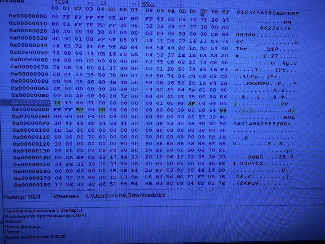 Да там все просто до вина должны стоять все FF кроме первого бита 00)) опком не трет первые две строки и подухи не срабатывают, хотя ошибок нет по системе