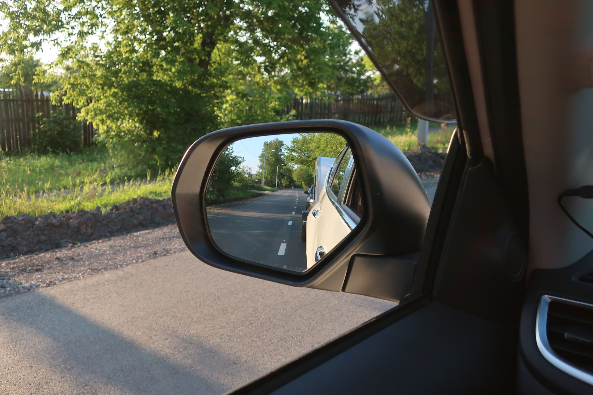 Прицепили прицеп и поехали, собственно, через весь город на выезд. Обзор в штатных зеркалах практически не изменился