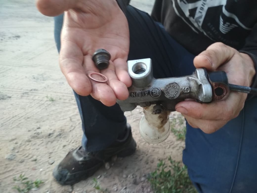 поставил цилиндр на место, прокачал и… педаль снова "залипла" ((( когда прокачивали услышал характерное потрескивание — подсос воздуха. Печалька… Заказал ремкомплект цилиндра сцепления Toyota 04311-12110, 1273 руб, разобрал полностью, добрался до поршня и увидел "виновника торжества"