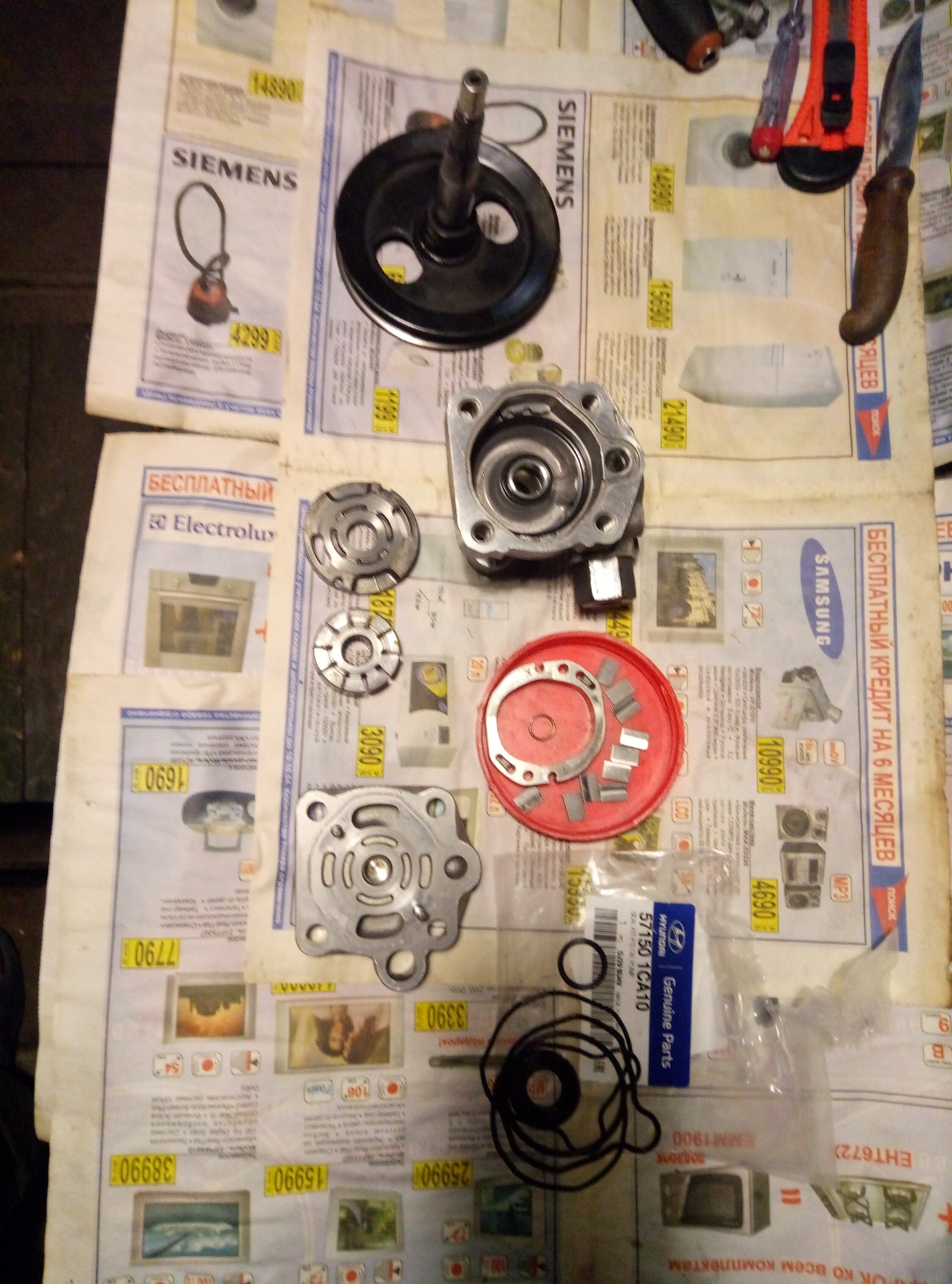 Разобрал, дольше всего возился со стопором на валу, снял отверточкой с трудом, резинки все сплющеные из круглых в сечении перешли в плоское состояние.