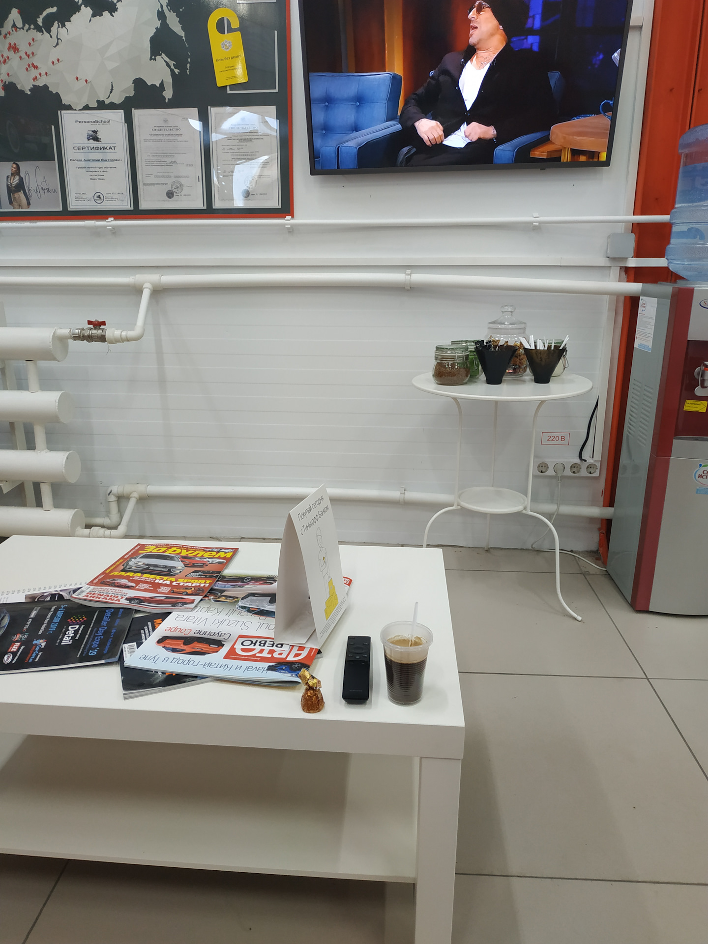 Если Вам неинтересен процесс, можно расположиться в VIP ложе 😉с чашечкой ароматного кофе, полистать журналы и посмотреть телевизор.