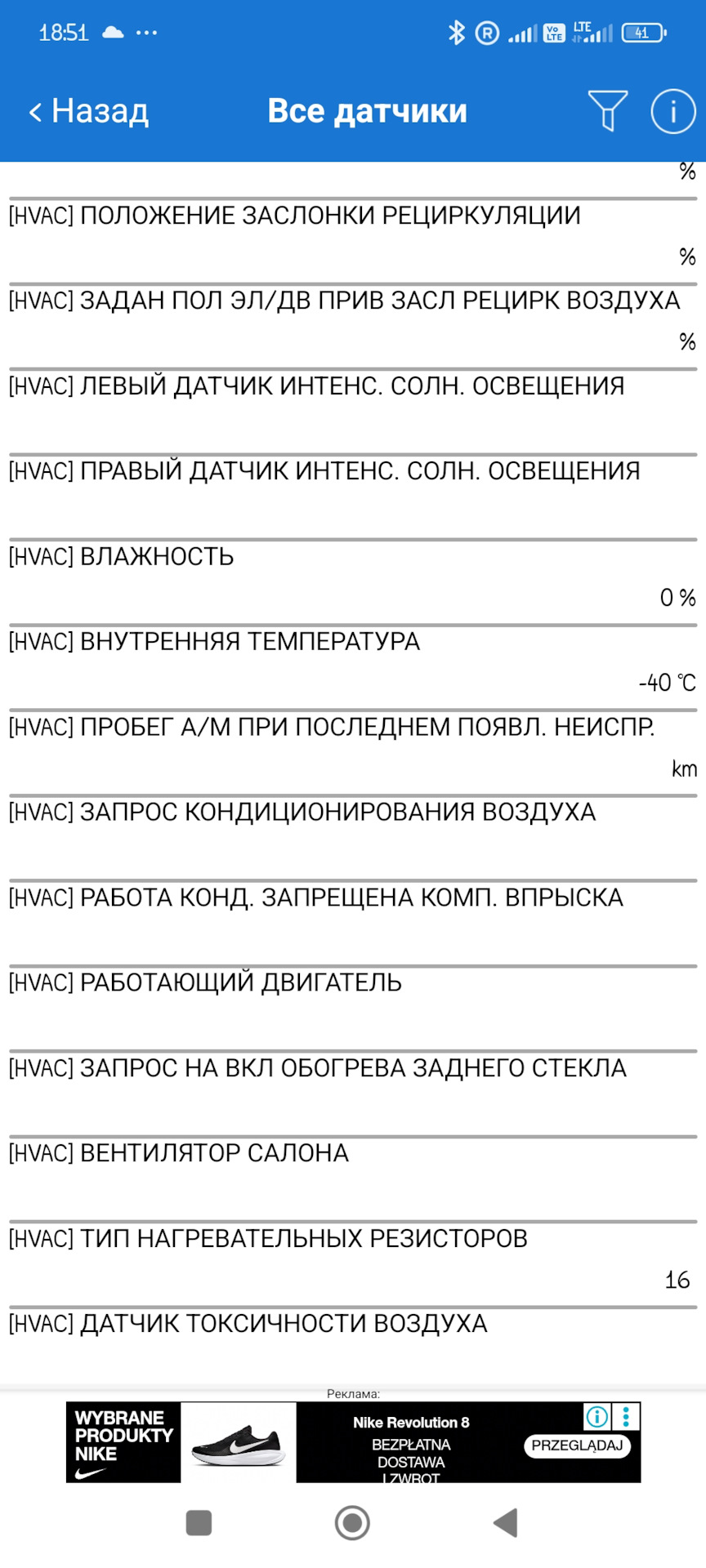 Внутренняя температура это и есть датчик температуры салонаю . если он выводит -40 значит его нет. Это просто значение заглушка.