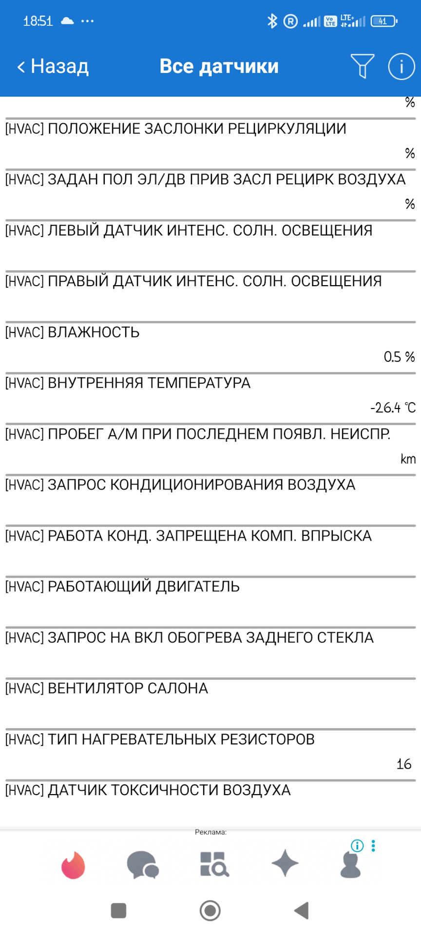 В пирене его и не будет, т.к нету климата. В том то и дело, 2 из 5 указали на этот датчик! Но где он, я не могу найти! Нету его в схемах. Сегодня я скачал сканер, и к моему удивлению, я тоже увидел этот параметр. На самом деле я искал датчик хладагента