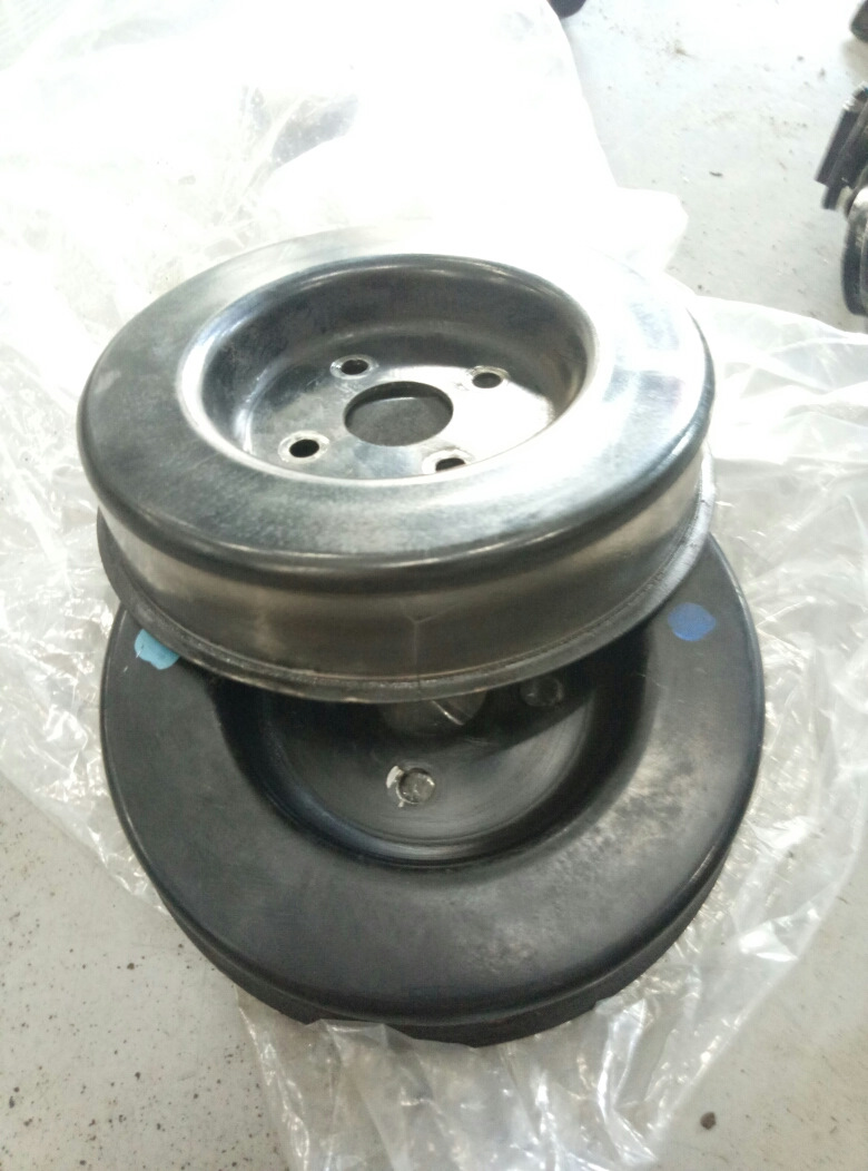 Скидываю ремень и осматриваю шкивы, виновник найден. Треснул шкив помпы.