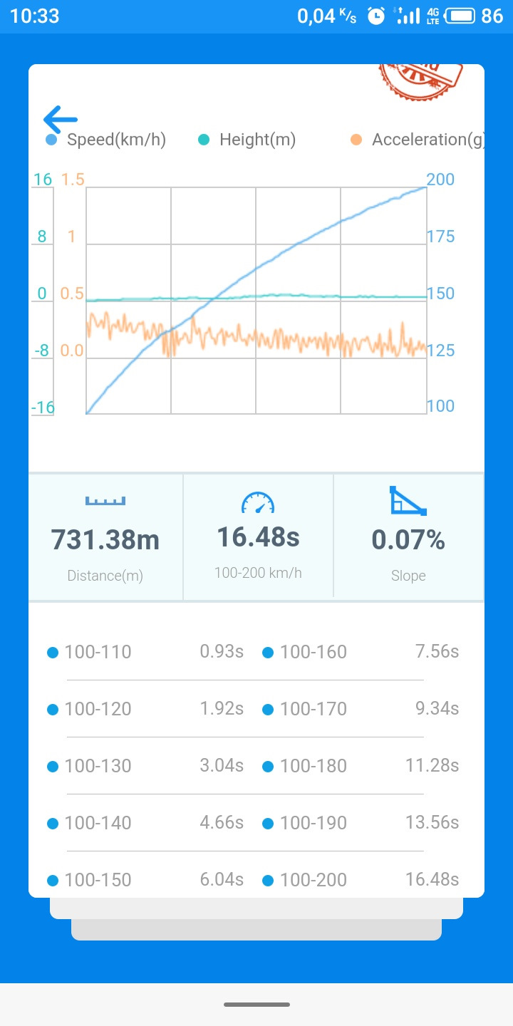 Заездов было 3, везде примерно так +- погрешность. На 260 я останавливаюсь потому что у меня ограничитель на 260 электронный.
