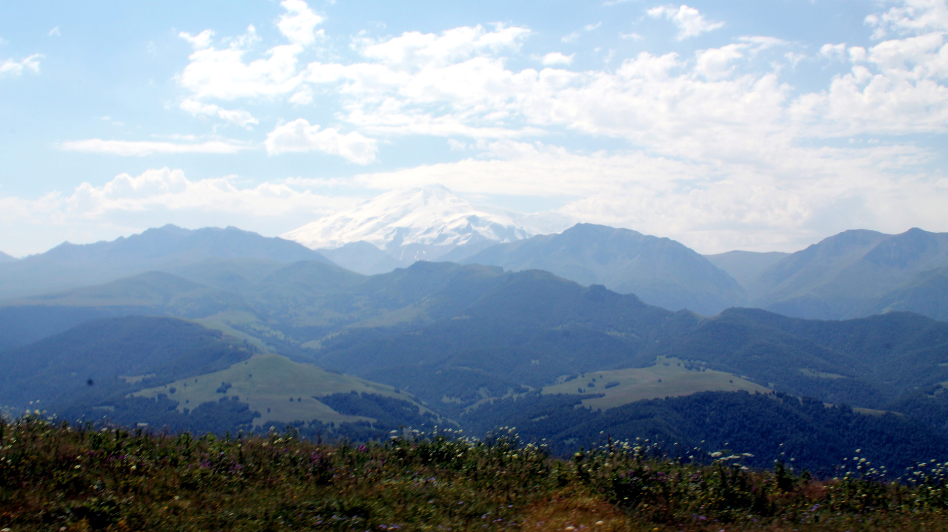 это Эльбрус, согласно хронологии мы едем по Сев.Кавказу, типа доездинг. Снято конечно не с трассы, поднимались.