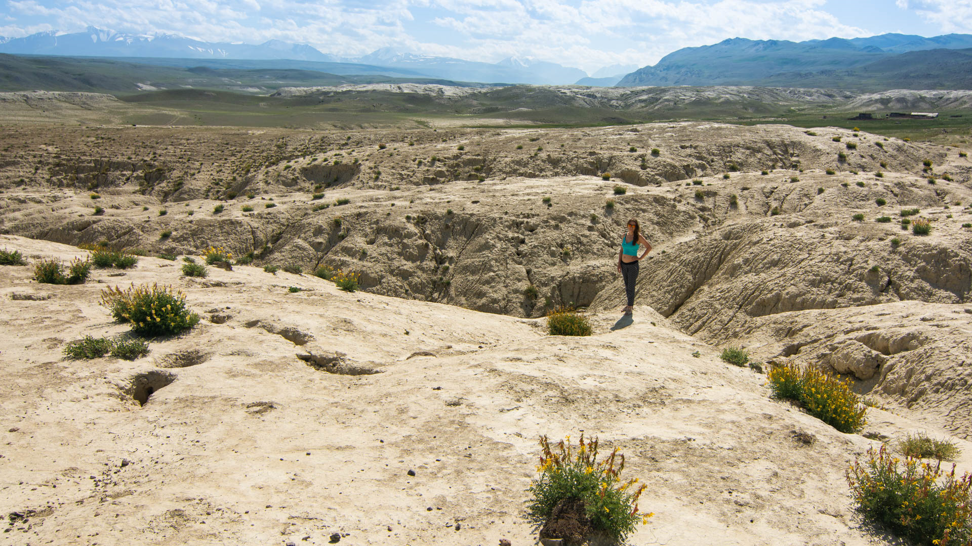 Что ж, не скажу, что меня это опечалило. Место обалденное. Белая глина (по слухам, имеет какую-то косметическую ценность, так что запасайте лопату и ведро), причудливые расщелины и провалы. Раньше тут было озеро, но его после землетрясения вода ушла. А дно — осталось.