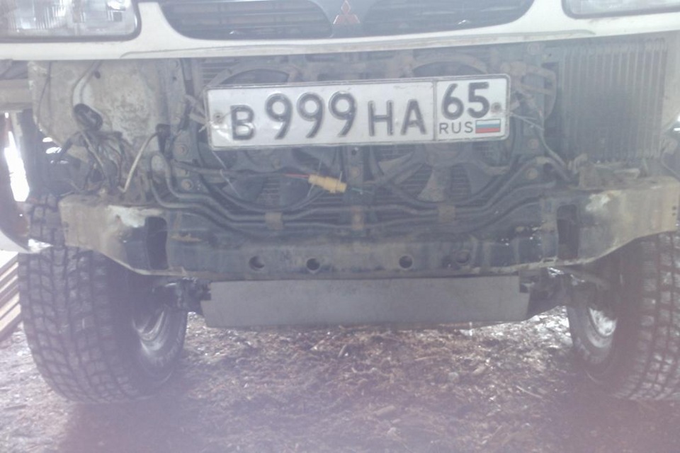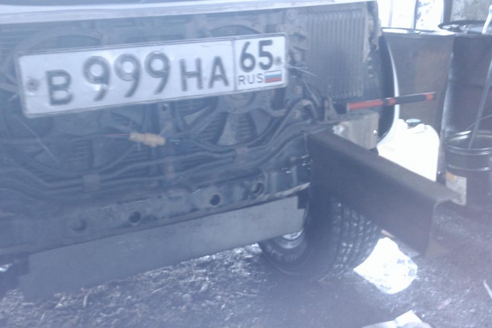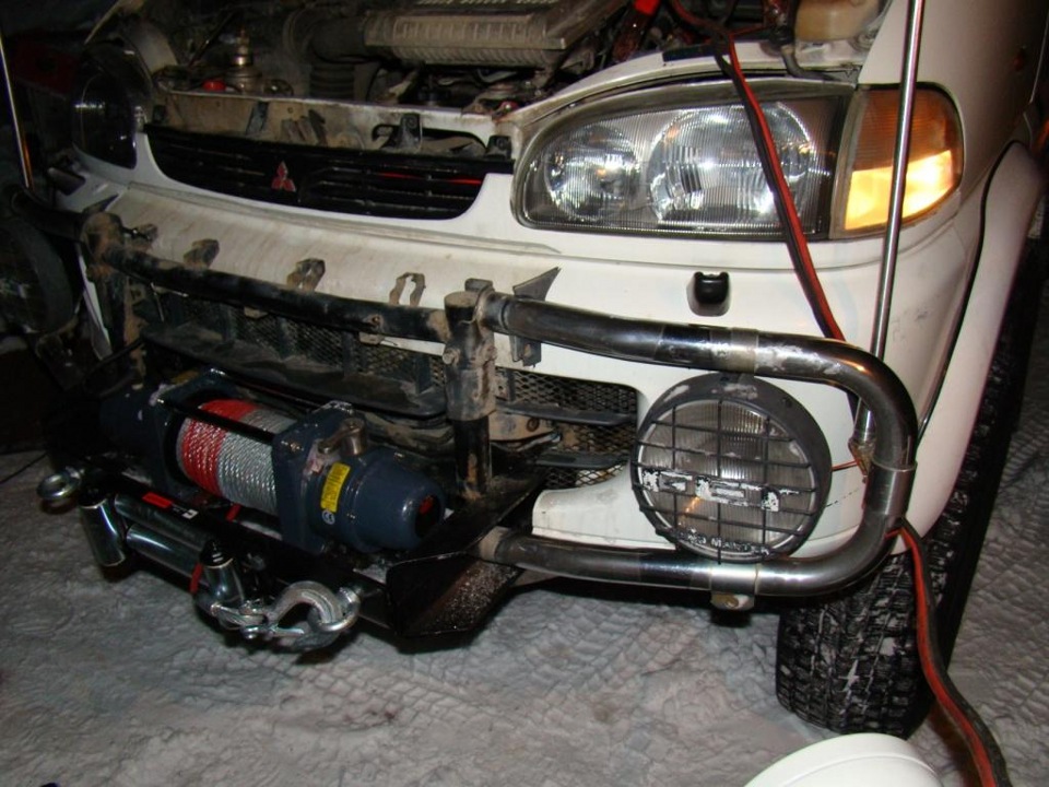 По приходу лебедки долго ни смог на нее смотреть решил устанавливать тк сам варить не умею попросил помочь друга все это дело сварганить. Приехав к нему раскидал морду машине полностью сняв дугу бампер и все остальное что мешалось.