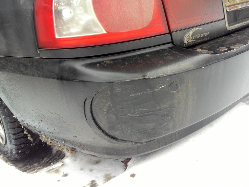 Скорость была 5-7 км/ч, но этого было более чем достаточно чтоб следующая за мной шевроле не успела от тормозится. Итог на фото (фото сделаны позже когда светлее стало, а то в темноте совсем хреновые получились).