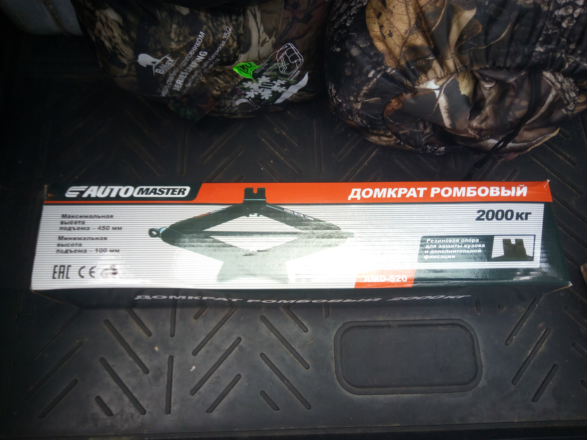 Решил заменить штатный домкрат на ромбический. Долго выбирал в итоге остановился на 2 тонном производства Автомастер AMD-520. Выглядит относительно надёжно. Резьба прямоугольная, жаль в соединениях больше не используют шестерни. Удобная резинка с прорезью для установки под машину. Подъём с 100 мм до 450. Резьбу смазал циатимом, так как с завода не смазан. Для замены колёса думаю вполне сгодится, а в гараже есть надёжный подкатной.