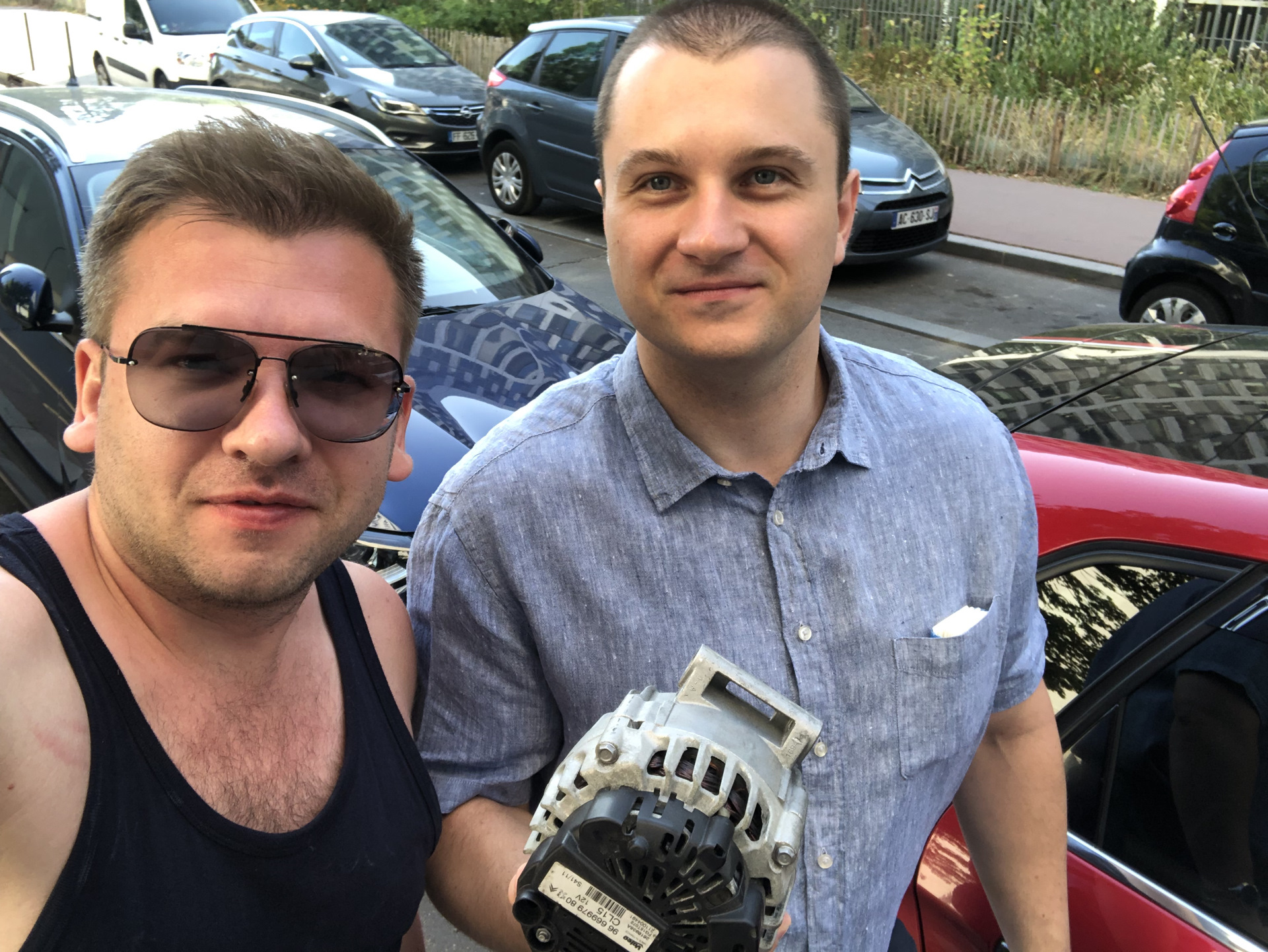 Когда сняли генератор, Максим предложил поехать со мной на место парковки и помочь с заменой. Я отказываться не стал. Мало ли чем закончится эта операция. В этот вечер ещё выиграла футбольная команда Алжира и на улицах Парижа были массовые гуляния с крикам, гонками на авто и поджиганием травы на газонах:)