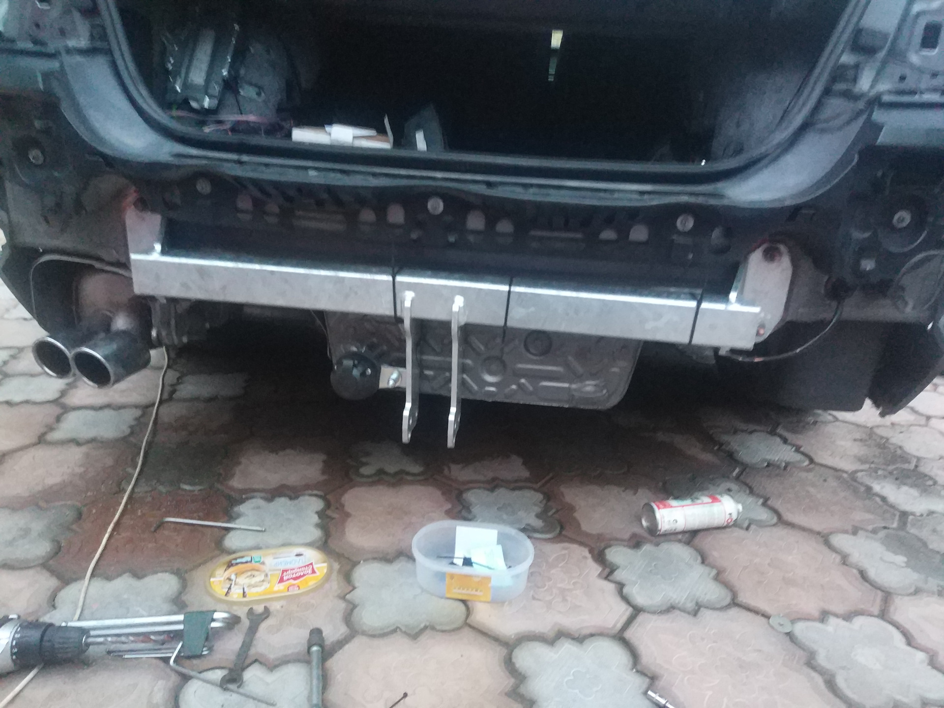 Второе на него крепится пластмассовая накладка, назначение которой мне неясно, но к этой накладке прикручивается часть защиты снизу. Те накладка эта не крепится на фаркоп и защита следовательно не крепится не к чему, так как накладка минусуется с защитой тоже надо думать и что-то колхозить.